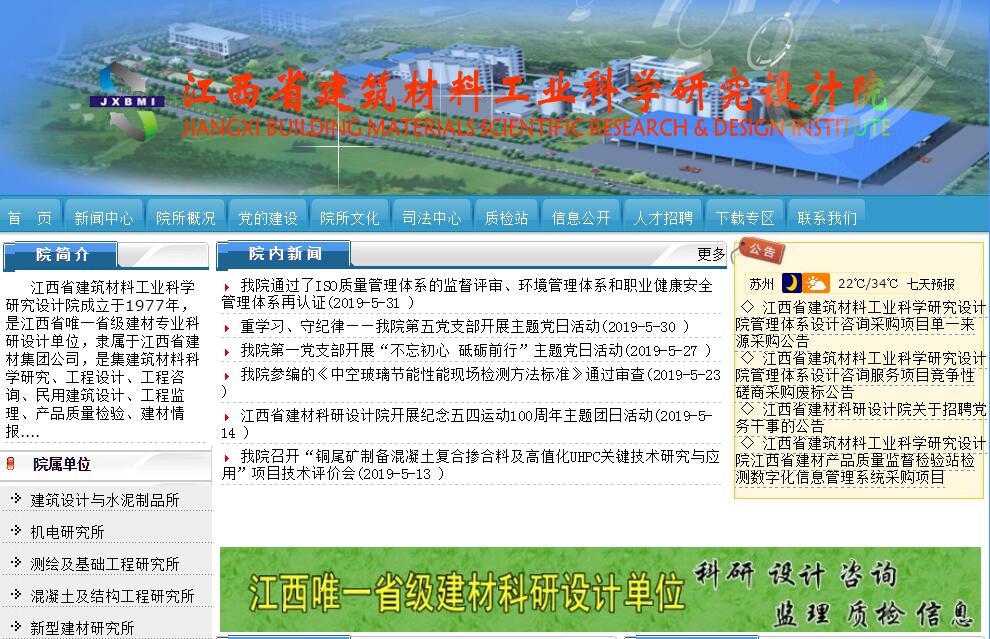 江西省建筑材料工业科学研究设计院成立于1977年,是江西省唯一省级建材专业科研设计单位,隶属于江西省建材集团公司,是集建筑材料科学研究、工程设计、工程咨询、民用建筑设计、工程监理、产品质量检验、建材情报信息和技术为一体的综合性科研设计单位。现持有水利工程质量检测单位混凝土工程类甲级资质、水利岩土工程类乙级资质、工程设计建材乙级、建筑乙级、工程咨询乙级、工程监理乙级、建筑工程及建材司法鉴定、水利工程质检、节能评估、能源审计、测绘等多个专业资质证书。院下设无机材料研究设计所、建筑设计所、科研所、新型建材研究所、江西省建材产品质量监督检验站、机电研究所、监理公司、混凝土及结构研究所、地基基础及测绘研究所、迪特科技有限公司、工程检测中心、建材科技情报站及健全的管理机构。2001年8月由江西省经贸委批准,成立了江西省建材行业技术中心。2004年江西省建材产品质量监督检验站通过中国实验室国家认可委员会认可。2013年江西省发改委批准我院为“江西省节能建材与结构工程研究中心”。 2015年经人力资源和社会保障部、全国博士后管理委员会组织评审,我院获准设立博士后科研工作站。 2016年江西省发改委批准我院为“江西省超高性能混凝土工程研究中心”。我院主要从事建材工业新产品、新技术、新设备的研究开发,主要研究方向为:水泥及其制品、玻璃、陶瓷、建筑人造板、工业废渣综合利用、建筑胶粘剂及涂料、防水材料、新型建材、建材装备、非金属矿产品、保温材料、建筑节能;承担中小型水泥、建筑陶瓷、人造板等建材工厂设计、水泥厂综合节能技术改造设计、民用建筑工程设计;承担江西省建材产品质量监督检验和仲裁检验;承担江西省二、三等建材工业建筑安装工程建设监理和二、三等一般工业与民用建筑工程建设监理业务;从事各类建筑防水工程的防水施工及补漏工程;开展建材科技信息服务和咨询业务;承办同济大学在职研究生班教学工作;承办《江西建材》半月刊(全国性建材专业期刊)。中国建材报江西记者站、江西省建筑材料工业联合会、江西省新型墙体材料协会、江西省散装水泥和预拌混凝土协会秘书处设在院内。我院现有职工总数240人,其中各类专业技术人员200余人(其中教授级高工6人,高级职称50人,中级职称54人),获国务院特殊津贴2人、省政府特殊津贴1人。有一批长期从事建材专业技术开发和设计工作的年富力强的技术带头人。建院至今,已拥有技术成果131项,共25项科研成果获得国家、部、省级奖励。其中获得全国科学大会奖1项、国家发明奖1项、江西省科技成果二等奖1项、三等奖4项、四等奖6项、江西省科技进步三等奖9项、国家建材局科技进步三等奖1项、第三届全国发明展览会银牌奖1项,有25项科研成果获得国家专利。创新跨越是江西省建材科研设计院不朽的灵魂,持续发展是江西省建材科研设计院发展的方向。我院将以技术服务打造精品,以科技创新铸就未来。