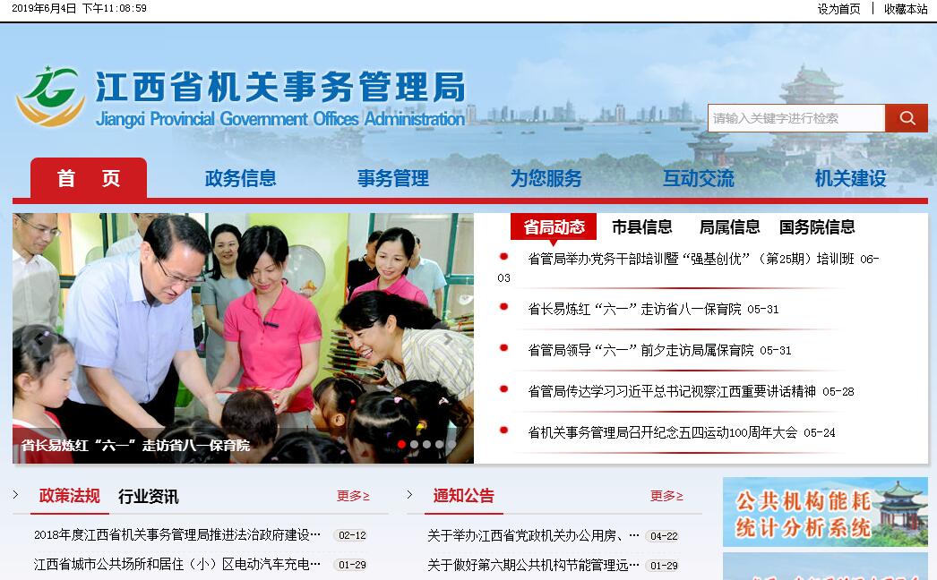 江西省机关事务管理局主要职责:1.指导、监督、检查全省机关事务管理工作,拟订全省机关事务工作的政策、规划、标准和规章制度并组织实施。2.指导、监督、检查全省机关后勤体制改革工作,拟订全省机关后勤体制改革政策、制度并监督实施,确定机关后勤服务项目和标准。3.统筹、指导、监督全省公务用车管理工作;负责省本级公务用车管理工作。4.指导、协调、推进、监督、考核评价全省公共机构节能工作,承担省本级公共机构节能监督管理工作。5.按照行政事业单位国有资产管理有关规定,负责省直机关土地和房产的使用、调配等工作。6.按规定承担省直单位办公用房和办公区的规划编制、项目审核、维修改造、工程监管工作,承担省直单位办公用房的清理整改督促检查工作。7.负责省直单位住房制度改革工作,拟订住房制度改革实施方案和规章制度并组织实施。8.负责省直单位和市、县人民政府驻外办事机构的清理规范工作,承担市、县人民政府驻昌办事处的管理和协调工作。9.负责省直单位及其工作人员外事活动、国内公务活动所受礼品的管理工作。10.协助省级重大活动和重要会议的总务和经费管理工作。11.负责有关领导的生活服务保障工作。12.负责省级重大应急、调研、接待和综合执法等公务用车保障任务,承担公车改革单位重大及特殊公务用车保障工作。13.负责省行政中心及省本级集中办公区的服务管理保障工作。14.承办省人民政府交办的其他事项。
