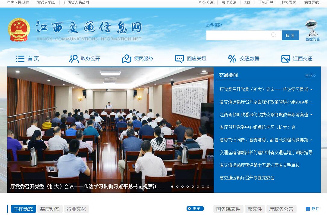 江西省交通运输厅是主管江西全省公路和水路交通运输行业的省人民政府组成部门。其主要职责是: 1、贯彻执行国家关于交通业的发展战略、产业政策和法律法规,拟定全省公路和水路交通行业发展战略和政策规章并指导实施。2、编制全省公路和水路交通行业的发展规划、中长期计划并组织实施;负责交通行业统计和信息工作。3、负责全省道路和水路旅客运输、货物运输、装卸搬运、汽车维修市场、运输服务、汽车租赁、汽车综合性能检测、汽车驾驶学校和驾驶员培训的行业管理;调控重点物资运输和紧急客货的运输;负责交通战备工作。4、指导交通行业体制改革;维护公路、水路交通行业平等竞争秩序;引导交通运输行业优化结构、协调发展。5、负责全省公路和水路交通基础设施的建设、维护和管理;组织国家和省重点交通工程建设的实施;管理交通建设市场。6、负责全省交通规费、公路通行费的征收稽查和使用管理;组织交通基础设施建设资金的筹集使用和管理。7、负责全省内河水上交通安全监督、船舶及水上设施检验、救助打捞、通信导航工作;负责船舶代理、外轮理货、航道疏浚、港口及港航设施建设使用岸线布局的行业管理。8、指导全省公路、水路、车船的技术标准管理,组织重大科技开发、项目攻关,推动行业科技进步;指导交通行业教育培训工作。9、负责厅机关及下属单位人事管理、劳动工资、机构编制管理和厅机关及在昌下属单位的党群工作;指导交通行业职工队伍建设和精神文明建设。10、负责交通行业的涉外工作,指导利用外资、技术引进和开展国际交通经济技术合作与交流。11、指导交通公安工作。12、承办省政府交办的其他事项。
