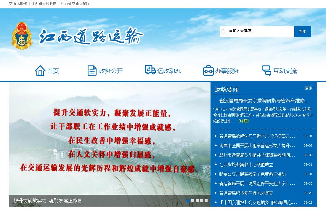 根据2009年12月省政府批准的“三定”方案,江西省公路运输管理局为江西省交通运输厅管理的副厅级全额拨款事业单位,代表政府对全省道路运输行使行业管理职能。现局机关内设党委办公室、办公室、法规稽查处(运政执法办公室)、财务审计处、客货运输管理处、城市客运管理处(出租汽车行业指导办公室)、计划基建处、车辆技术管理处、安全监督处、驾驶员培训管理处(道路运输从业人员资格管理办公室)、科技信息处、组织人事处、离退休干部处、监察室(与纪委合署办公)等14个处室,下设局机关后勤服务中心。省公路运输管理局机关全额拨款事业编制98名,后勤服务中心事业编制18名。其主要职责是:(一)贯彻执行国家有关道路运输、城市客运的法律法规和方针政策,拟订有关政策、准入制度、技术规范、营运标准并监督实施;(二)承担全省道路旅客运输、道路货物运输、站(场)、机动车维修、营运车辆综合性能检测、机动车驾驶员培训管理的具体工作;(三)承担指导全省城市公交、出租车、轨道交通管理的具体工作;(四)负责跨省(自治区、直辖市)、跨设区市道路旅客运输许可和道路旅客运输增加班线许可;(五)负责国际道路运输许可;(六)组织实施道路运输经理人和机动车驾驶培训教练员从业资格考试;(七)依法实施道路运输行政处罚,对道路运输管理机构的执法活动进行指导监督;(八)承担抢险、救灾、战略物资等紧急道路运输任务和指令性计划运输的具体组织实施;(九)承担省交通运输厅交办的其他事项。