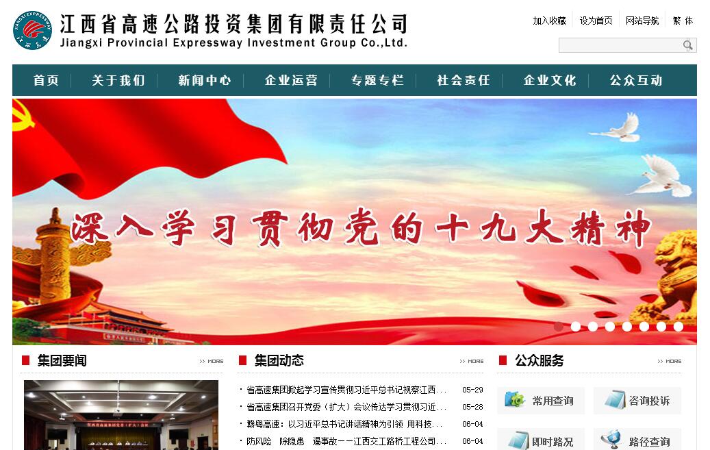 江西省高速公路投资集团有限责任公司(简称“省高速集团”或“集团”)是经省政府批准成立的大型国有独资企业,省交通运输厅根据省政府授权依法履行出资人职责。集团于2009年11月28日挂牌成立,2010年1月1日正式运作。目前,集团注册资本为95.05亿,资产总额达2806亿元,位居全省第1,净资产1091亿元,位居全国同行第2;旗下直接管理10个全资及控股子公司(其中1个上市公司)、8个直属路段管理中心、11个参股子公司,共有690个所属单位、18000多名员工,企业信用评级为AAA,连续多年入围中国服务业500强;经营管理5112公里高速公路,占全省通车里程的86%;经营业务除高速公路投资建设、运营管理外,还涉足金融投资、路域资源、工程施工、地产开发等领域。项目建设好中求快。江西高速公路起步于上世纪80年代末,全省第一条高速公路昌九高速于1993年建成通车。20多年来,全省共投入2500多亿元建成62条6000公里高速公路,其中集团共建成49条5112公里,自成立以来平均每2年建成1000公里,创造了令人瞩目的“江西速度”。截止目前,全省高速公路通车里程达5944公里,名列全国第8,打通了28个出省通道,是全国继河南、辽宁后第三个实现“县县通高速”的省份,形成了“纵贯南北、横跨东西、覆盖全省、连接周边”的高速路网。全省高速公路通车里程占全国总里程的4.4%,超过了全省经济总量、人口及土地面积占全国的比重。集团投资建设的景婺黄(常)高速公路荣获“詹天佑奖”,九江长江公路二桥荣获“中国建设工程鲁班奖”和“詹天佑奖”。产业经营实中求优。集团成立以来,立足高速公路主业,大力发展工程施工、金融投资、路域资源等产业,初步形成了一个以交通基础设施投资建设运营为主线、多种产业统筹发展的产业格局。工程施工板块,大力推进设计施工、监理咨询、试验检测等产业参与市场竞争,积极响应“一带一路”倡议,与新疆克州政府开展了交通建设项目合作,参与了肯尼亚、埃塞俄比亚等海外交通基础设施的投标、建设。金融投资板块,通过发行公司债、组建银团贷款等方式,累计融资3100多亿元,成为全国融资渠道最多、融资成本最低的公路企业;出资51亿元筹建注册资本位居全国第5的高速财务公司,投资40.79亿元成为江西银行第一大股东,投资江西联合股权交易中心成为并列第一大股东,投资1.5亿元参股国开思远投资基金。路域资源板块,组建高速石化公司,设立资产经营公司,积极推进光伏、天然气、加气站、充电桩等产业,光伏项目开创了国内高速公路大范围、多类型光伏应用的先河。大力实施“高速+旅游”战略,投资建设“研学中国·抚州项目”、自驾车旅居车营地等,打造“高速+旅游”全产业链条。设立了交通投资公司、恒锦地产公司等,先后开发完成了21多个、1867亩、246万平米地产项目,目前正开发建设11个、1900多亩、200多万平米地产项目。运营管理稳中求进。道路养护方面,在“十一五”、“十二五”的全国干线公路养护管理大检查中,连续两次获得了高速公路排名全国第六的成绩,高速公路优良路率达99%。收费服务方面,ETC是全国首批华东六省一市联网的省份之一,建成ETC车道597条、ETC收费站数量281个、自动发卡机车道364条,涌现了熊文清班组、龚全珍班组等一批全国知名窗口品牌和8名“最美中国路姐”、6个“最美中国路姐团队”,“微笑映山红”被评为全国交通运输行业十大“文化品牌”,“巾帼鹰西”等获得全国交通行业文明示范窗口。服务区运营方面,把服务区作为“星级酒店、特色超市、休闲景点”来打造,推行“卖场经营”模式,在全国首推“同城同价、平价消费”,按照“一区一特色”思路,打造了庐山、龙虎山等7对全国百佳示范服务区和26对“全国优秀服务区”。行业文明方面,集团先后获得全国五一劳动奖状、全国交通运输文化建设示范单位等称号,集团各单位累计荣获省部级以上荣誉570余项。