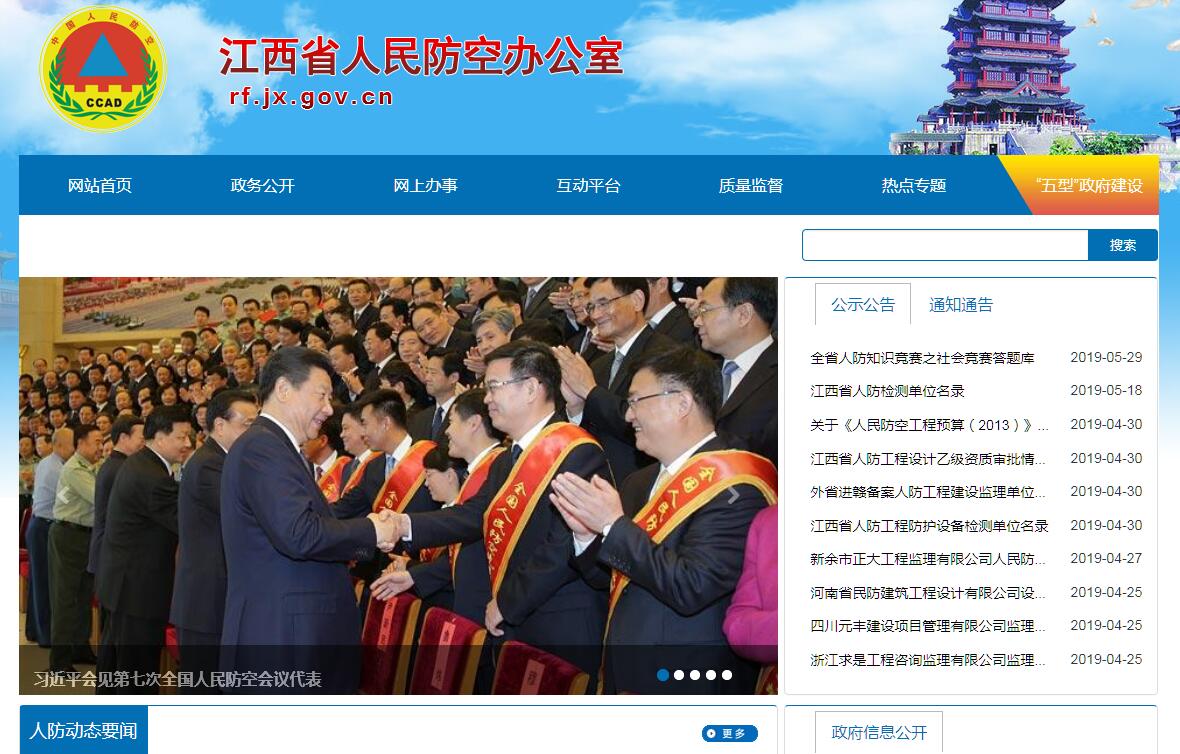 江西省人民防空办公室(简称省人防办)是省人民政府直属机构。其主要职责是:(一)负责人民防空法律、法规的贯彻实施和监督检查;组织起草本省人民防空法规规章,拟定有关政策。(二)拟定人民防空建设的中长期发展规划,制定全省人民防空建设年度计划;组织拟定人民防空建设与城市相结合规划,审核城市总体规划贯彻落实人防要求人防建设规划情况。(三)组织开展人民防空指挥工作。指导各地制定城市防空袭方案,监督检查重要经济目标防护、城市防空袭方案和各项保障方案的落实;依法组织城市防空袭演习;指导群众防空组织建设和训练工作;参与承担政府赋予的防灾救灾工作,利用人防设施和人防专业队伍为经济建设和防灾救灾服务。(四)组织管理人民防空工程建设。对人防工程(含结合民用建筑修建的防空地下室)建设实施计划、技术和质量管理。指导人防工程维护管理、平时利用和城市地下空间开发建设中落实人防要求工作。(五)组织管理人民防空指挥信息化建设。指导和开展指挥自动化、空情报知、防空警报、通信保障和信息保密系统建设,建立健全人防信息系统执勤和维护管理制度,监督全省人防指挥信息系统畅通。(六)负责人民防空宣传教育工作。组织制定人民防空和参与防灾救灾教育计划并组织实施。(七)负责人民防空经费和国有资产。依法收缴社会负担的人防建设费用,编制人民防空经费预决算,对使用情况适时监督检查。(八)战时组织开展城市人民防空袭斗争。(九 )承办省人民政府、省军区、省国防动员委员会交办的其他事项。
