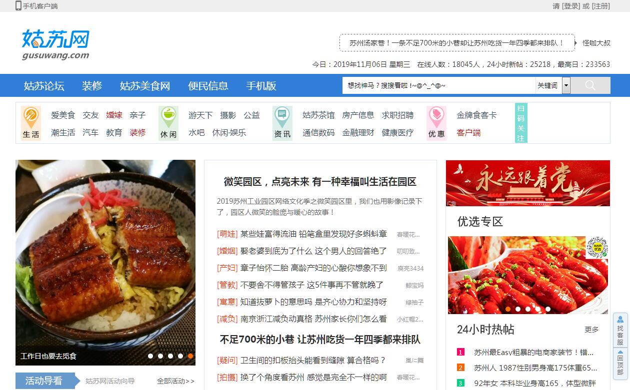 | 网站简介: 《姑苏网》是苏州综合生活服务平台,注册会员超过350万,日均独立访客超过20万,日均浏览量超过150万,同时在线人数超过2万人。姑苏网微信公众号被腾讯评选为“苏州影响力自媒体”,粉丝突破42万。苏州社会化新媒体: 《姑苏网》关注民生,传播本地生活资讯,为满足市民随时随地的互动性表达、娱乐与信息需要,提供更为阳光、便捷的交流平台。苏州网络生活社区:十二年来,《姑苏网》秉承“阳光、温暖、分享”的理念,伴随着众多网友从毕业工作到结婚生子,为苏州市民提供了延伸现实生活的网络圈。苏州互动消费平台:《姑苏网》专注于为苏州市民提供生活消费指南。目前用户群主要为18-45岁强大购买力的高知人群,他们是生活消费的主力军,在美食、购物、装修、交友、结婚、亲子、旅游、汽车、房产 、理财等领域分享真实的消费体验。 |