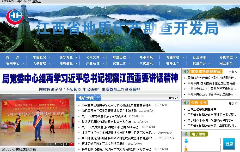 江西地矿局成立于1958年5月,为省政府直属正厅级事业单位,队伍规模居全国第二,拥有各类专业技术人员近5000人,其中高级750人、中级1230人,是找矿勘查实力强、科技创新成果多、服务社会贡献大的综合性新型地勘单位。主要承担国家和省下达的地质调查、矿产勘查任务,负责省域内的基础性、公益性、战略性地质工作,查明全省水文地质、工程地质、环境地质条件和地球物理、地球化学背景,为进一步开展包括核工业地质、煤田地质、有色地质、石油地质等地质找矿工作提供基础资料和科学依据,为国民经济社会发展、基础设施建设、城镇规划、园区建设、生产力布局提供基础资料和科学依据。先后完成了全省各种比例尺(精度)的区域地质调查、矿产地质、水文地质、工程地质、环境地质和灾害地质调查、地球物理勘探、地球化学勘探等工作,先后发现并探明43处大型特大型矿床、73处中型矿床等一大批矿产地,为江西赢得“世界钨都”、“稀土王国”、“亚洲铜都”、“有色金属之乡”的美誉,铸就了江西矿产资源大省的地位,崛起了新余、萍乡、德兴、贵溪、丰城等一批以矿业经济为主的城市,为我省经济社会发展提供全面、可持续的矿产资源保障和技术服务支撑。近年来,进一步发挥全省地质找矿主力军作用,积极面对形势变化,果断将工作重点从多业并举,转移到地质找矿和服务经济社会发展上来,确立了“抓项目、争市场,活机制、强管理,上规模、增效益,办实事、惠民生”工作方针,在钨、铁、铜、钼、铅锌、地热找矿及页岩气勘查评价等方面取得了一系列重大突破。用两年不到的时间在武宁县大湖塘矿区找到了世界最大钨矿,探明钨矿储量106万吨,超过江西原有钨矿保有储量的总和,相当于再造了一个世界钨都,潜在经济价值超3000亿元。在浮梁县朱溪发现品位、规模为大湖塘钨矿两倍以上,钨、铜远景资源量分别达200万吨、100万吨的世界罕有超大钨铜矿床。在赣中累计探明储量8.6亿吨,初步预测铁矿资源总量l5亿吨以上,潜在经济价值超过3000亿元,使新余钢城重新焕发了青春。在赣北找铜前景良好,有望再造一个“江西铜基地”。在环境地质、农业地质、城市地质、灾害地质、旅游地质等领域积极作为,全力服务我省经济社会发展。围绕昌九一体化建设等省委重大战略谋篇布局,安排实施了700多个水文地质工程地质环境地质重点项目。围绕新能源发展,成立了全国首个省级页岩气勘查开发研究院,在全国率先开展了全省页岩气前景调查研究,累计投入3100多万元,实施了14个页岩气调查项目,基本摸清了江西页岩气的资源家底,积极推进江西页岩气勘查开发。围绕区域发展规划,实施了10余个国家、省级重点项目,开展了我省全部36个原中央苏区及连片特困区县域地质矿产、水文地质、工程地质、环境地质调查评价工作。围绕现代生态农业发展,在全省开展了农业地质调查,发现1.3万平方公里富硒岩土资源,催生了丰城市“中国生态硒谷”生态农业示范基地的建立,取得了良好的经济社会效益。为庐山、三清山、龙虎山申报世界地质公园,继而为申报世界自然遗产作出重要贡献,受到省政府表彰。在南昌、宜春、九江、吉安、萍乡、井冈山等地开展地热勘查,发现了丰富、优质的地热资源,促进了宜春温汤、星子温泉、庐山西海、南昌金燕等温泉旅游地产的开发,得到各级政府欢迎。工作足迹遍及全国、全球。连续15年在青藏高原为祖国寻找矿床,取得突出成绩,参与的项目获国家科学技术特等奖;公路和地基基础工程施工水平全国领先,参与建设了世界第一跨海大桥——杭州湾跨海大桥、全球最大机场——首都国际机场、天津第一高楼——津塔广场、全球最大港运码头——上海港国际航运中心等数百项知名工程。积极实施“走出去”发展战略,在亚非拉等10多个国家从事找矿,勘查面积超过10000平方公里,在坦桑尼亚、巴基斯坦、纳米尼亚等国家承揽建设了多个国际承包工程。始终以改革创新精神扎实推进党的建设和精神文明建设,积极培育、大力弘扬“以献身地质事业为荣、以艰苦奋斗为荣、以找矿立功为荣”的“三光荣”和“特别能吃苦、特别能忍耐、特别能战斗、特别能奉献”的“四特别”精神,涌现出以杨衍忠、胡为正等为代表的一大批先进典型。局及所属4个单位为全国文明单位,局机关被评为“省直十佳文明机关”,10个局属单位被评为省第十三届文明单位,15个单位被评为省直第十届文明单位。局连续16年被评为“全省社会治安综合治理先进单位”,连续4届获“全省思想政治工作先进单位”,连续6年被省直工委授予“党的工作特别优秀奖”。站在新的历史发展起点上,江西地矿局在省委省政府的正确领导下,以地质找矿和服务经济社会发展为工作主线,解放思想,凝聚共识,深化改革,攻坚克难,为江西“发展升级、绿色崛起、小康提速、实干兴赣”做出更大贡献而不懈奋斗。