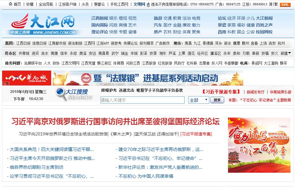 中国江西网成立于2000年9月,由江西日报社主办,是江西省首家由国务院新闻办网络局批准成立的全国重点新闻网站,是经新闻出版总署批准的互联网出版单位。中国江西网是江西日报社旗下五报三刊数字内容唯一授权经营单位。日点击量超过600万,同时在线人数超过了80万人次,日更新量超过6000条。中国江西网以向世界传播江西的声音为己任,在省委省政府重大的宣传报道、突发事件报道中充分发挥主流媒体作用,已成为党和政府重要的喉舌和舆论阵地。中国江西网七次获得中国新闻奖。此外,中国江西网还荣获“中国网络媒体优秀单位”、“中国报业经营管理奖”、“江西慈善突出贡献宣传单位”,《大江论坛》被评为“2012年度中国互联网品牌栏目”和江西新闻名专栏,《问政江西》被评为“2013年度中国互联网品牌栏目”。目前,网站业务范围覆盖手机报、移动客户端、信息技术服务、舆情服务、网站建设、电子商务、演出、互联网药品信息服务等领域。2014年9月24日,中共中央政治局常委、中央书记处书记刘云山同志在中共中央办公厅编发的内部消息《弘扬真善美 网聚正能量——中国江西网发掘推送网络典型人物的做法和启示》上批示“江西的经验和做法可介绍推广”;9月26日,中共中央政治局委员、中央书记处书记、中央宣传部部长刘奇葆同志批示:“利用网络宣传推介先进人物有重要作用,应作进一步设计并推广成功经验。”10月17日,央视新闻联播以《全国大力开展学习宣传先进典型工作》为题进行的报道中,聚焦中国江西网先进典型人物宣传。18日,《人民日报》、《经济日报》、《光明日报》等多家中央媒体以《彰显平凡中的伟大 凝聚奋发向上的力量》为题,盛赞中国江西网发掘推送网络典型人物的经验做法。未来几年,将立足全国重点新闻网站中国江西网和全省统一的手机党报江西手机报(含新闻客户端)两大优势网络平台,重点开展互联网广告、信息技术服务、移动增值服务、舆情服务、网站代建代维、音视频直播录播等业务,积极开拓电子商务、网络教育、互联网彩票、动漫游戏、演艺、户外媒体、金融信息服务、网络支付平台、大数据服务等互联网与传媒文化相关业务,致力于打造成为基于传统互联网、移动互联网和物联网的、领先的新闻信息综合服务提供商,进一步提升新闻的时效性和传播力,牢固树立地方网站的优势地位,在区域网络市场和专业领域形成核心竞争力,努力实现跨越式发展,打造全国一流的新型主流媒体。