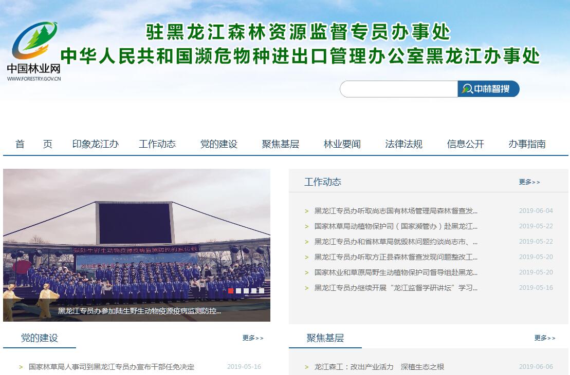 黑龙江专员办(濒管办)全称为“国家林业局驻黑龙江省森林资源监督专员办事处”和“中华人民共和国濒危物种进出口管理办公室黑龙江省办事处”,是国家林业局派驻的首批森林资源监督机构,一套班子,两块牌子。黑龙江专员办为正厅级建制,内设综合处、森林资源监管处、林政监管处、专项业务监管处、濒危物种进出口管理处5个处室。黑龙江专员办(濒管办)全面负责黑龙江省的森林资源监督管理工作和濒危物种进出口管理工作,承担着森林资源监管、重点国有林区占用林地初步审核、新增林业投资监管、濒危物种进出口管理、重点国有林区《林木采伐许可证》核发、县级人民政府保护发展森林资源目标责任制检查等多项监督管理职责,任务艰巨、责任重大、使命光荣。建办以来,在国家林业局和黑龙江省委、省政府的正确领导下,在省森工总局、省林业厅的支持配合下,历届领导班子带领全办上下辛勤工作、共同努力,为黑龙江省林业发展做出了积极贡献,为森林资源监督管理事业奠定了良好基础。近年来,通过创新体制机制,采取森工系统层级派驻监督机构、地方林业系统由驻省专员办与省林业厅联合聘任监督联络员的方式,在黑龙江省森工林区和地方林业分别建成了比较完备的森林资源监督体系,有效地提升了黑龙江省森林资源的保护监督管理能力。