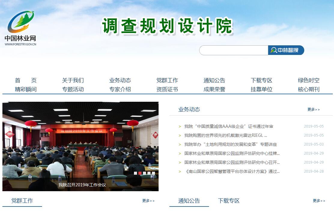 国家林业和草原局调查规划设计院(原林业部调查规划设计院)是国家林业局直属的集林业资源监测、林业信息化建设、林业规划设计于一体的公益型事业单位,成立于1954年。国家林业局信息中心、中国防治荒漠化监测中心、国家林业局湿地资源监测中心、国家林业局GEF湿地项目办公室、国家林业局陆生野生动物与野生植物监测中心、国家林业局东北森林资源监测中心,国家林业局森林资源和环境管理重点开放性实验室等业务机构也设在本院。国家林业和草原局调查规划设计院具有甲A级林业调查规划设计资格证书,国家林业甲级工程设计、工程咨询资格证书,甲级建设项目水资源论证资质证书,风景园林乙级工程设计、工程咨询和农业乙级工程咨询资格证书,甲级测绘资格证书和对外业务经营权。我院是中国工程咨询协会及中国林业工程建设协会常务理事单位,同时也是中国勘察设计协会、中国国际工程咨询协会、北京市勘察设计协会会员单位。主要承担国家林业局和国家有关部门下达的林业生产咨询评估、科研、开发任务,为国家林业建设与发展提供决策依据,同时,接受社会和林业行业部门的委托,提供相应的技术支持与服务。业务范围:一、资源监测、调查业务方面。(一)、在有关业务司局指导下,承担全国森林资源监测(含天然林资源、生态林资源的监测)、荒漠化监测、湿地资源监测、野生动植物资源监测、森林火灾监测、生态工程及森林生态环境监测工作。包括:1、组织编制各项监测工作规划、技术发展规划和监测年度工作计划,报国家林业局审批后,组织实施。2、组织制订技术方案、技术标准、规定,并负责组织技术培训。3、承担监测任务,负责进度和质量检查、成果验收。4、负责全国监测数据的统计、汇总、分析及数据管理。5、负责监测信息系统的开发、监测信息数据库的建设、运行及监测信息的开发应用。6、组织编制全国单项监测报告和综合报告。(二)、在业务司局的指导下承担全国林业区划、森林分类经营区划、林业专业调查等工作。包括制订工作计划、技术标准,负责技术培训、指导、进度和质量检查、成果验收,全国性成果的汇总、数据建库等工作。(三)、组织实施林业资源调查基础数表的编制及数表汇编、建库等工作。(四)、承担森林火灾、病虫害、自然灾害的损失调查评估。(五)、承担盗伐、滥伐林木、毁林、侵占森林、乱捕滥猎野生动物及破坏野生珍贵濒危植物、林木等案件的技术取证、价值评估工作。