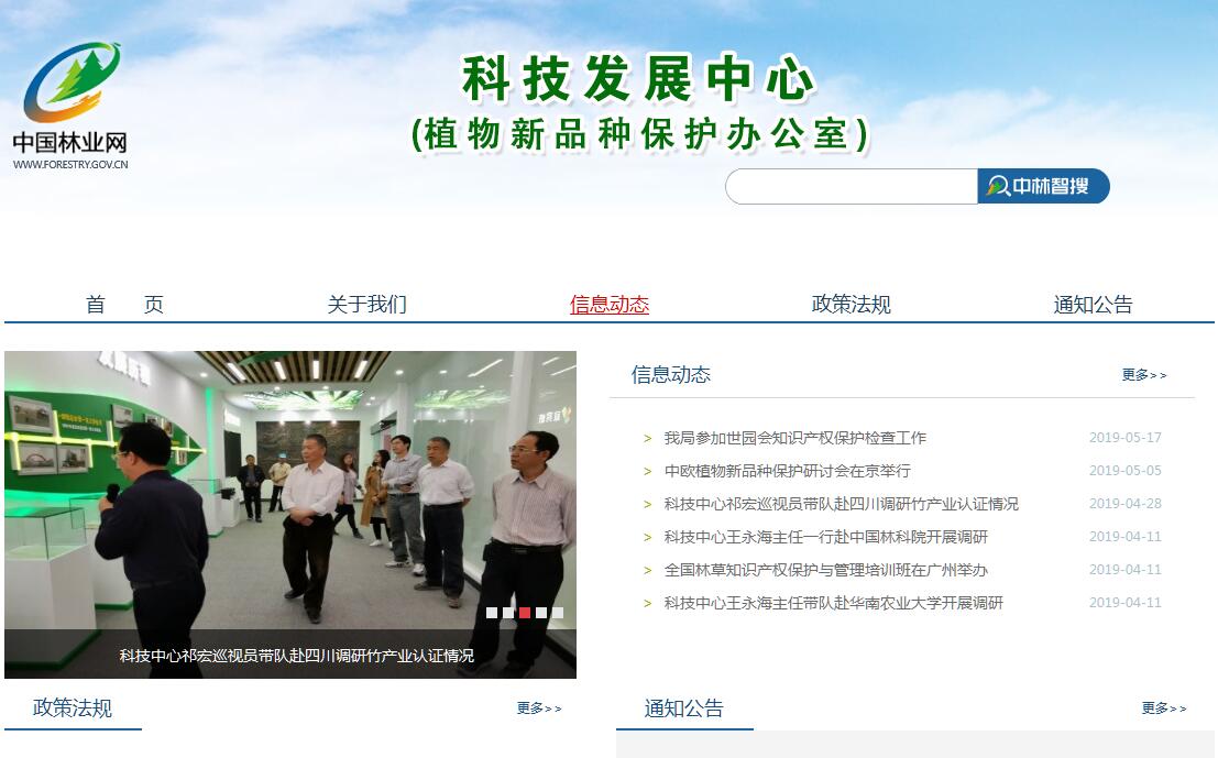 国家林业和草原局科技发展中心(国家林业和草原局植物新品种保护办公室)为国家林业和草原局具有行政职能的正司局级事业单位。其主要职责是:一、提出《中华人民共和国植物新品种保护条例》及林业实施细则修改建议,拟定有关管理办法并监督贯彻执行。二、提出林业植物新品种保护名录,负责林业植物新品种权申请的受理、初步审查、实质审查(测试)工作。三、承担报批、颁证、登记、收费、出版公报、档案管理等林业植物新品种权授权的具体工作和植物新品种保护复审委员会交办的具体事务。四、负责林业植物新品种权申请代理人、执法人员、测试人员培训工作;组织建设新品种测试体系、代理机构和保藏机构;查处及指导下级查处林业植物新品种权侵权、假冒授权品种案件。五、承办林业植物新品种保护参与国际公约事务,开展植物新品种保护国际合作交流工作。六、负责局直属单位知识产权的管理工作并指导林业系统专利等知识产权管理工作。七、提出林业转基因生物安全管理法规建议,参与制定林业转基因生物安全管理办法并监督贯彻执行,承担林业转基因生物安全管理工作。八、参与森林认证管理法规的制订修改,承担森林认证评估、颁发证书、复评估、贴标签等具体工作,参与森林认证的国际合作。九、开展林业科技成果转化和产业化的技术服务工作,建立示范样板,举办技术培训。十、承办上级行政部门交办的其它事务。