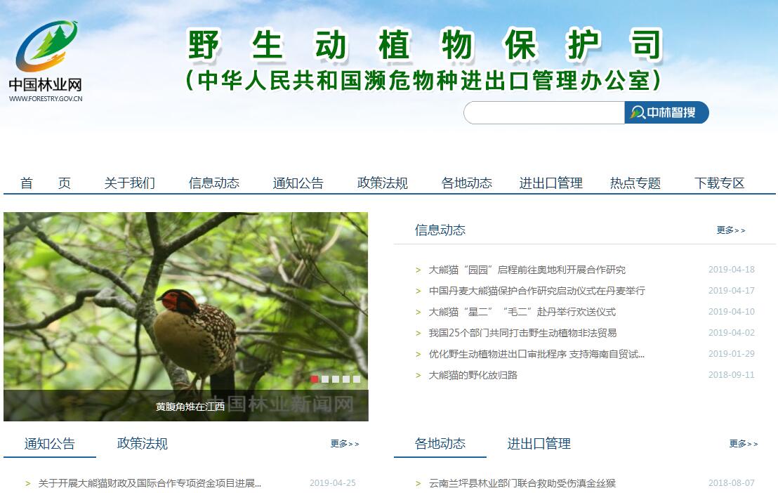 国家林业和草原局野生动植物保护司(中华人民共和国濒危物种进出口管理办公室)主要职责:一、在陆生野生动植物方面的职能是:1、在国家林业和草原局组织下,参与研究拟定国家野生动植物进出口管理工作的方针、政策和法律、法规,协助主管部门组织协调全国野生动植物进出口管理工作。 2、代表我国政府与《濒危野生动植物种国际贸易公约》(下称《公约》)所属机构及缔约国《公约》管理机构进行事务联系,会同有关部门统一制定履行《公约》的对外政策,参与研究处理与《公约》相关的重大国际事务和港澳台履约的有关事务。 3、组织研究各缔约国提交《公约》的决议、提案等文件,并提出相应的对策;会同有关部门向《公约》提出我国的决议、提案等文件草案。负责陆生野生动物和珍稀野生植物的履约工作。 4、在国家确定的年度野生动物猎捕、野生植物采集和经营利用总限额内,负责提出全国野生动植物和珍贵树木进出口限额计划,经主管部门授权,负责审批国家二级野生动物及其产品、国家一、二级野生植物及其产品的进出口,核发野生动植物或其产品的《允许进出口证明书》;统一印制和管理使用《允许进出口证明书》。 5、负责对野生动植物或其产品进出口经营单位和个人的登记、注册;负责进出口野生动植物或其产品的鉴别和标记管理工作;负责非盈利性种用野生动植物的进口免税工作。 6、协助监督检查口岸、边贸野生动植物或其产品的贸易情况,配合有关部门开展进出口野生动植物或其产品的执法活动及案件查处工作。 7、会同有关部门开展对非法进出口濒危物种的收容救护和被没收物种的返还、接收及处理工作。 8、负责各办事处的业务管理、财务管理和人员培训,协助人教司抓好人事管理工作。协助有关省、自治区、直辖市林业厅(局)抓好办事处的党的建设和机关建设工作。9、承办国家林业和草原局交办的有关事宜。二、在水生野生动植物方面的职能是:1、代表我国政府与《濒危野生动植物种国际贸易公约》(下称《公约》)所属机构及缔约国《公约》管理机构进行事务联系,会同有关部门统一制定履行《公约》的对外政策,参与研究处理与《公约》相关的重大国际事务和港澳台履约的有关事务。 2、组织研究各缔约国提交《公约》的决议、提案等文件,并提出相应的对策;会同有关部门向《公约》提出我国的决议、提案等文件草案。负责水生野生动物和珍稀野生植物的履约工作。 3、核发野生动植物及其产品允许进出口证明书。