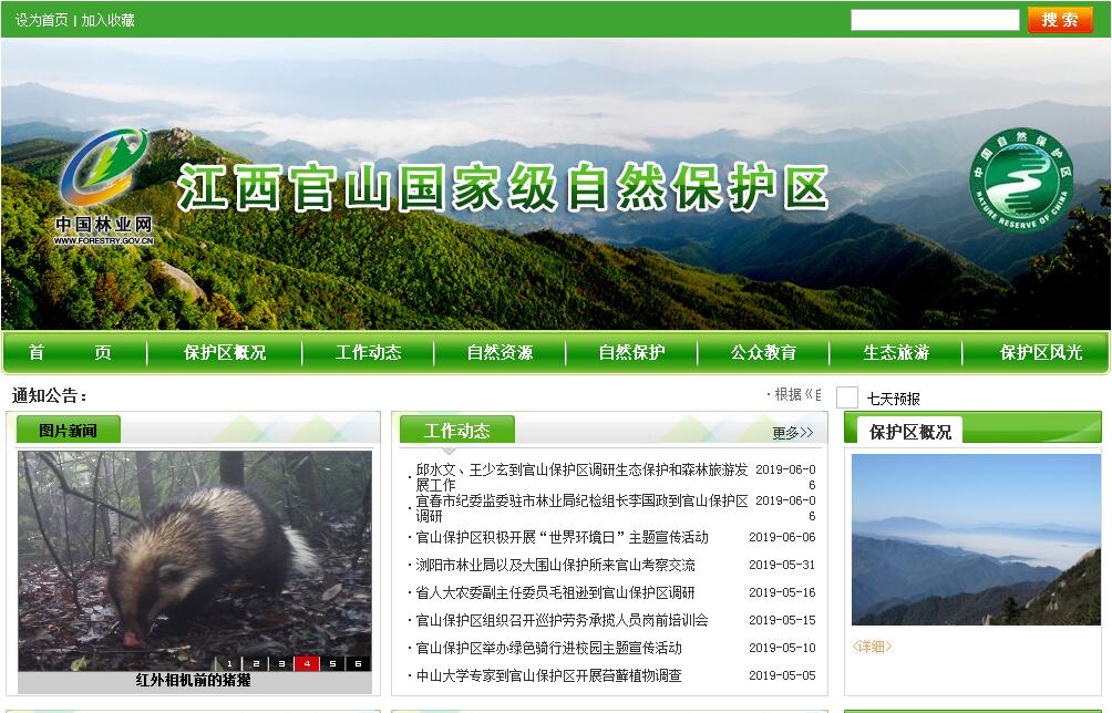 江西官山国家级自然保护区地处赣西北宜丰、铜鼓九岭山脉西段,地跨两县,主峰麻姑尖海拔1480米,总面积11500.5公顷,其中核心区3621.1公顷,缓冲区1466.4公顷,实验区6413.0公顷。地理坐标为东经114°29′~114°45′,北纬28°30′~28°40′。 明朝隆庆-万历年间(1567-1573),农民起义领袖李大銮以九岭山区腹心区域李家屋场(今官山自然保护区东河保护站所在地)为根据地,揭竿而起,汇集起义队伍达8万多人,官府调集军队多次进行围剿,历时数年才把起义镇压下去,尔后,皇帝下旨把这一带列为禁山,不准平民百姓在此居住营生,从此,人们称它为“官山”,因此,官山已有400多年的封禁历史,加上险峻复杂的地形,温暖湿润的气候因素,使得许多生物在此得以保存和繁衍。1975年,原江西省宜春地区农垦局(今宜春市林业局)在官山林场划定1200公顷面积,建立“江西省宜春地区官山天然林保护区”,是江西省第一批建立的3个自然保护区之一,1981年3月,经江西省人民政府批准为省级自然保护区,面积6466.7公顷,是江西省首批6个省级自然保护区之一。2007年4月,经国务院批准,成立江西官山国家级自然保护区。保护区内保存着较大面积的原生状态的常绿阔叶林,保存着丰富的野生动植物资源。经初步调查,保护区有高等植物2344种,其中苔藓植物238种,隶属61科136属,占全省种类的42.3%;蕨类植物191种,隶属36科79属,占全省种类的43.9% ;裸子植物19种,其中野生分布的有11种,隶属6科8属,占全省种类的35.5%;被子植物1896种,隶属190科,772属,占全省种类的46.4% 。另外,还有已鉴定出的大型真菌132种,其中15种是江西省新纪录。保护区内已查明的脊椎动物有31目94科304种,占全省种类的45.3%,其中哺乳类8目18科37种;鸟类16目51科157种;爬行类2目12科66种;两栖类2目8科31种;鱼类3目5科13种。另外,保护区内已查明的软体动物有14科19属27种,昆虫有21目222科989属1607种。保护区内有国家重点保护的植物:南方红豆杉、伯乐树、长柄双花木、伞花木、篦子三尖杉、香果树、野大豆、花榈木、凹叶厚朴、闽楠、香樟、毛红椿等20种。国家重点保护的野生动物有白颈长尾雉、黄腹角雉、云豹、豺、白鹇、勺鸡、普通鵟 、仙八色鸫、小鸦鹃、猕猴、大灵猫、小灵猫、金猫、穿山甲等37种。官山位于中亚热带温暖湿润气候区,四季分明,气候温和。境内小气候效应明显,冬无严寒,夏无酷暑,春雨绵绵,秋高气爽。景区地形复杂,山脉绵亘,群山耸峙,山溪纵横,自然条件十分优越。景区游览区面积有7.9平方公里,自然景观有:双猴守官山、吊洞瀑布、回龙卧子潭、子母石、参天石、石龟望海、雷劈石、五马奔槽、罗汉石群、猴洞、青龙埂等20余处,人文景观有:麻姑庙、点将台、将军屯、九娘池等多处,植物群落有:南方红豆杉群落、乐昌含笑群落、穗花杉群落、云锦杜鹃群落、千亩麻栎林群落、长柄双花木群落、香果树群落、巴东木莲群落等数十个,还有野生猕猴观赏园区、植物标本园、生态科普宣传馆、方竹园、高山杜鹃园、原始森林等保护园区,是集休闲、避暑、保健、探险、游玩、观光、度假为一体的自然风光胜地。官山国家级自然保护区到处是绿色的宝藏,到处有迷人的风光,到处流传着神奇的故事。愿官山这块宝地,在人们的心中永远留下美好的回忆。