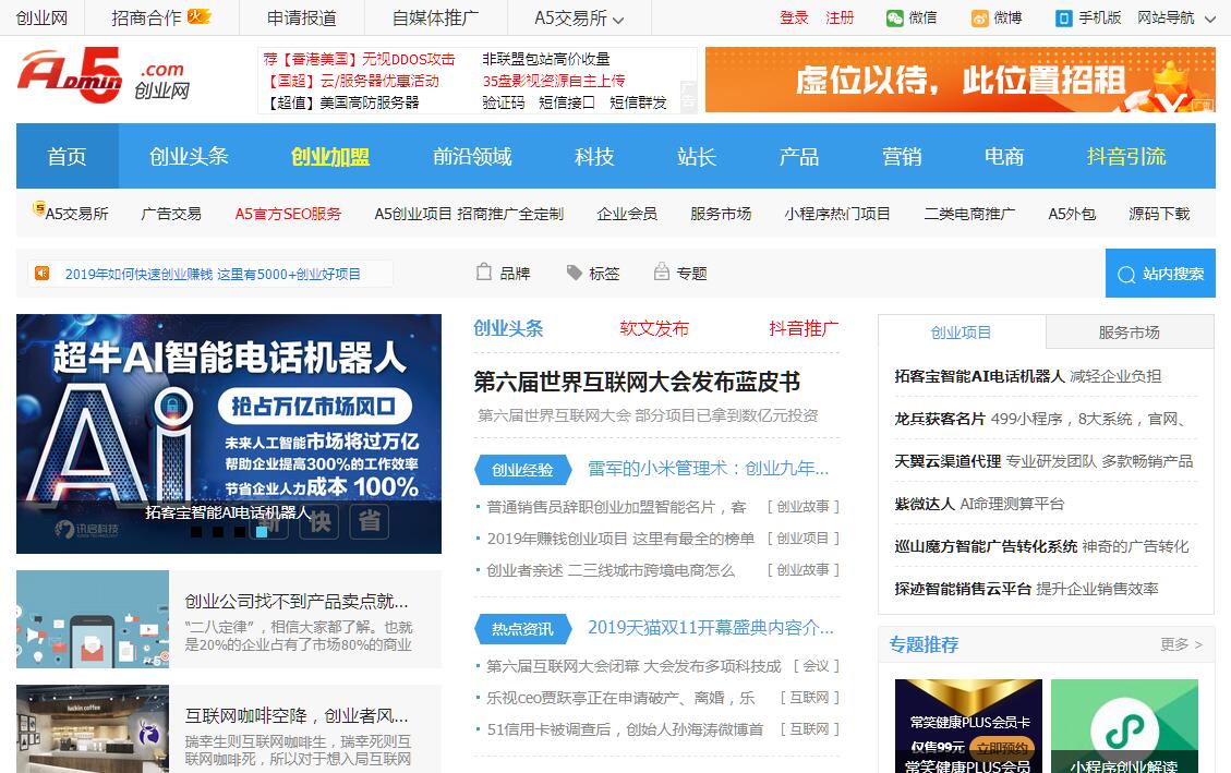 | 网站简介: A5创业网成立于2005年6月,是国内关注互联网、人工智能的领先媒体,由互联网知名站长图王创建。至今以来,我们一直都在为创业者提供优质的互联网创业内容以及创业公司、创业项目报道。截止目前,报道累计服务过超过3万家创业公司和创业项目,被业内人士公认为是创业公司寻求报道首选平台。A5创业网,为互联网创业者提供专业权威的创业项目以及创业经验、创业报道、众创空间入驻等。创业项目包含人工智能、智能家居、互联网+、企业应用、娱乐游戏等前沿领域。A5创业网全力支持创业者的梦想!A5创业网,专注于互联网项目招商加盟平台,打造行业标杆,为招商企业构建多元化、系统化的一站招商模式,按效果说话。通过创业项目入驻+招商VIP特权+品牌营销+招商广告的创新模式,帮助招商企业快速拓展加盟代理渠道。徐州好推网络科技有限公司(A5创业网)。 |