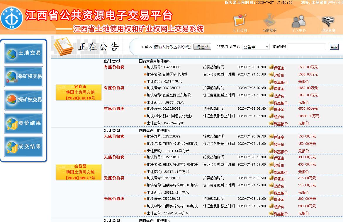 江西省土地使用权和矿业权网上交易系统。