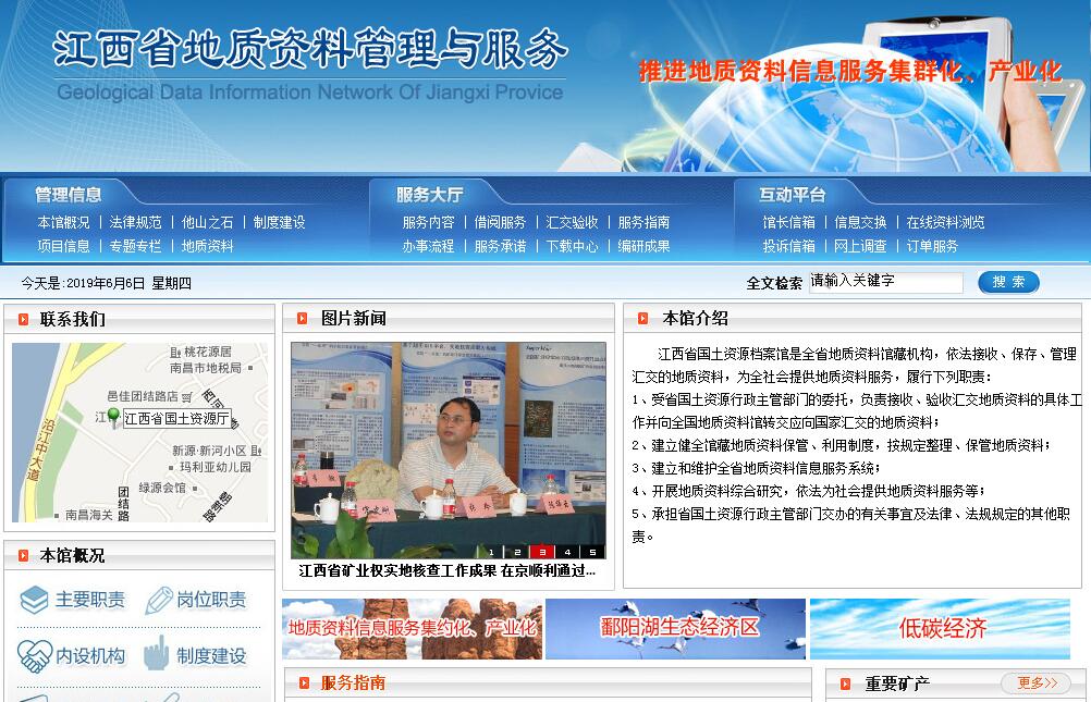 | 网站简介: 江西省国土资源档案馆是全省地质资料馆藏机构,依法接收、保存、管理汇交的地质资料,为全社会提供地质资料服务,履行下列职责:1、受省国土资源行政主管部门的委托,负责接收、验收汇交地质资料的具体工作并向全国地质资料馆转交应向国家汇交的地质资料;2、建立健全馆藏地质资料保管、利用制度,按规定整理、保管地质资料;3、建立和维护全省地质资料信息服务系统;4、开展地质资料综合研究,依法为社会提供地质资料服务等;5、承担省国土资源行政主管部门交办的有关事宜及法律、法规规定的其他职责。 |