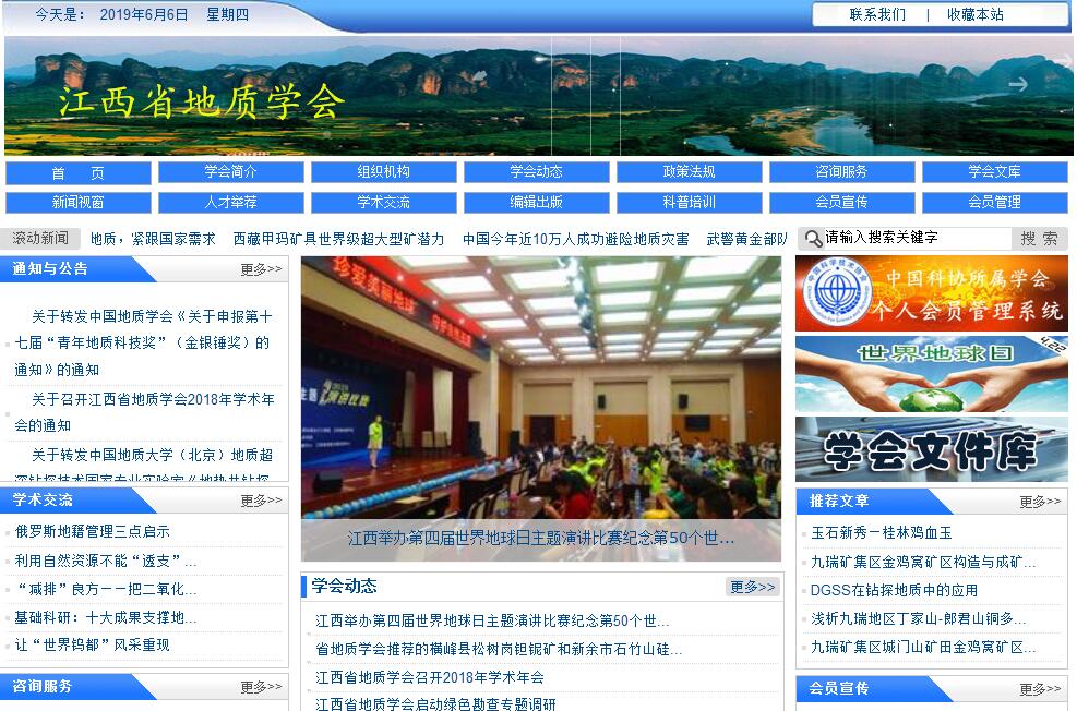 江西省地质学会是地质科技工作者群众性学术团体,是党和政府联系广大地质科技工作者的桥梁和纽带,是推动地质科技进步的重要社会力量。学会由省内地质科学技术工作者自愿组成并依法登记成立的全省性、学术性、非营利性的法人社团,又是中国地质学会的组成部分。现挂靠江西省国土资源厅,业务主管单位是江西省科学技术协会,社团登记管理机关是江西省民政厅。江西省地质学会, 英译名为GeoIogicaI Society of Jiangxi Province,缩写为“GSJX”。江西省地质学会成立于1964年7月,是江西省建立较早的学术团体之一。目前,学会有会员2204人,设立10个专业(工作)委员会,10个系统中心组,138个基层中心组,会员分布在全省地矿、有色、煤田、核工业等部门和有关院校。现任理事会有87名理事,名誉理事长陈清华、刘积福、周文斌,理事长吕细保,副理事长韦星林、刘庆成、刘跃伟、张春晓(女)、张赣萍、邹汾生、陈祥云、郝佩永、戴民主、李桂生,秘书长黄越。江西省地质学会坚持以邓小平理论和"三个代表"重要思想为指导,深入贯彻科学发展观和"百花齐放、百家争鸣"的办会方针,弘扬科学精神,普及科学知识,传播科学思想,捍卫科学尊严,反对迷信愚昧和伪科学,提倡“献身、创新、求实、协作”的精神,竭诚为经济社会发展服务,为搭建学术交流平台服务,为广大会员和科技工作者服务,加强学会自身建设,把学会建设成为科技工作者之家。江西省地质学会坚持深化改革,探索适应社会主义市场经济、符合科学技术和科技团体发展规律的组织体制、运行机制和活动方式,充分发挥人才优势,开展学术交流、科技咨询,普及地学知识,培养地质科技人才等社会职能,使地质学会的影响日益扩大,凝聚作用不断增强。我会一直将学术属性视为最本质的社会职能,在开展学术交流、组织学术会议等方面发挥了重要作用。通过编辑出版会刊,建立江西省地质学会网站,形成了便捷、系统的学术交流网络,与各行业的地质工作者有着广泛的联系。同时学会十分重视科技人才的发现、培养和推荐工作,十分重视科普工作,每年的“世界地球日”和青少年地学夏令营活动已成为我会科普工作的传统项目。另外我会还受江西省国土资源厅委托承担管理矿山资源储量地质测量机构资质的认定和管理,全省矿产资源储量评审专家评审工作以及日常管理工作。江西省地质学会为发展我省地质科技事业作出了贡献,得到各级领导机关的充分肯定。连续多年荣获中国地质学会和省科协省级先进学会称号。涌现了一大批学会先进集体、优秀科技工作者和先进工作者。