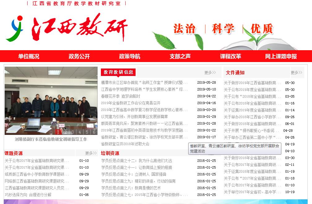 江西省教育厅教学教材研究室主要职责:1.负责贯彻落实党的教育方针政策和国家教育法律法规,贯彻落实省委教育工委和省教育厅的工作部署;2.负责研究基础教育思想、教学理论、课程设置、教学内容、教学组织形式、教学方法和课程评价,研究开发教育资源,探索教学规律;3.负责组织教研人员和教师参加教学工作研究和教学科学研究等教研活动,组织教师进行专题性研修活动和进行课题研究;4.负责组织教师学习教育理论,指导学校实施课程方案和进行教学改革实验,总结推广教育教学改革经验;5.负责制定中小学和幼儿园教学常规制度,提出执行课程方案和使用教材的意见,并指导与督促贯彻落实;6.负责全省中考命题和高中会考命题,以及学校技能操作考试和信息技术无纸化考试命题工作,承办中小学各学科竞赛组织、阅卷等工作;7.负责组织编写中小学和幼儿园教材(含地方课程教材)和教辅材料,提出教学用书选用意见。组织教材试验工作并进行监督检查;8.参与中小学和幼儿园省级优秀教学成果、教师专业技术职务、特级教师和学科带头人评审的有关工作。参与组织实施课程改革实验,制订实验计划,培训实验教师,指导实验工作,推广实验成果;9.完成上级有关部门和领导交办的其他工作。