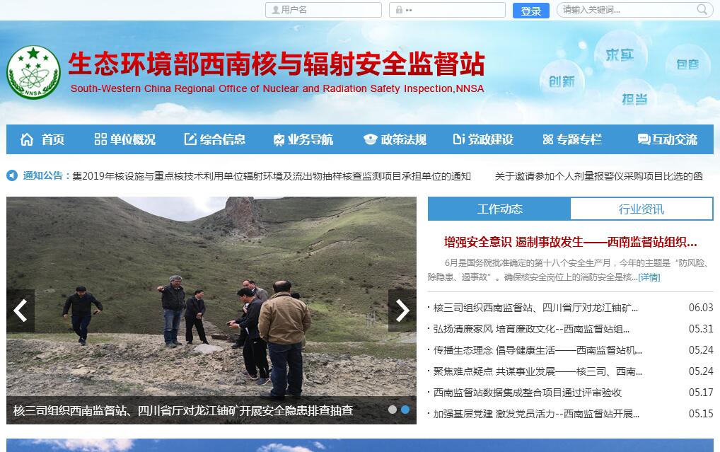 | 网站简介: 生态环境部西南核与辐射安全监督站是根据法律法规授权和生态环境部委托,负责重庆、四川、贵州、云南、西藏五省(自治区、直辖市)区域内的核与辐射安全监督工作,主要职责为:1、负责核设施核与辐射安全的日常监督;2、负责核设施辐射环境管理的日常监督;3、负责由环境保护部直接监管的核技术利用项目辐射安全和辐射环境管理的日常监督;4、负责由环境保护部直接监管的核设施营运单位和核技术利用单位核与辐射事故(含核与辐射恐怖袭击事件)应急准备工作的日常监督,以及事故现场应急响应的监督;5、负责由环境保护部直接监管的核设施和核技术利用项目辐射监测工作的监督及必要的现场监督性监测、取样与分析;6、负责对地方环保部门辐射安全和辐射环境管理工作的督查;7、负责核设施现场民用核安全设备安装活动的日常监督和民用核设施进口核安全设备检查、试验的现场监督;8、负责民用核设施厂内放射性物品运输活动的监督;9、承办生态环境部交办的其他事项。 |