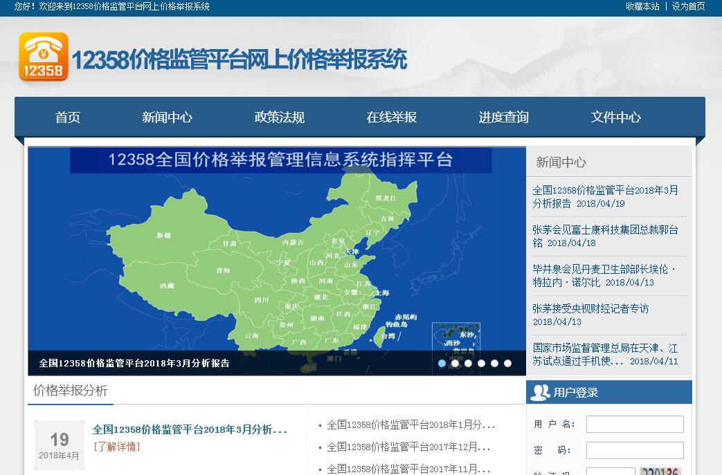 | 网站简介: 12358价格监管平台网上价格举报系统由国家市场监督管理总局价格监督检查与反不正当竞争局主办。 |