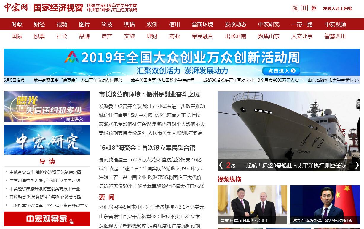 | 网站简介: 中宏网是国家发展改革委主管,具有国家互联网一类网站资质的中央级新闻网站,是国家发展改革委新闻信息以及重要方针政策、法规条款的新媒体发布平台,是中国宏观经济领域智库专家论道的首选阵地,侧重于经济类信息宣传推介,是全面展示和提升国家经济发展成果的重要窗口。 |