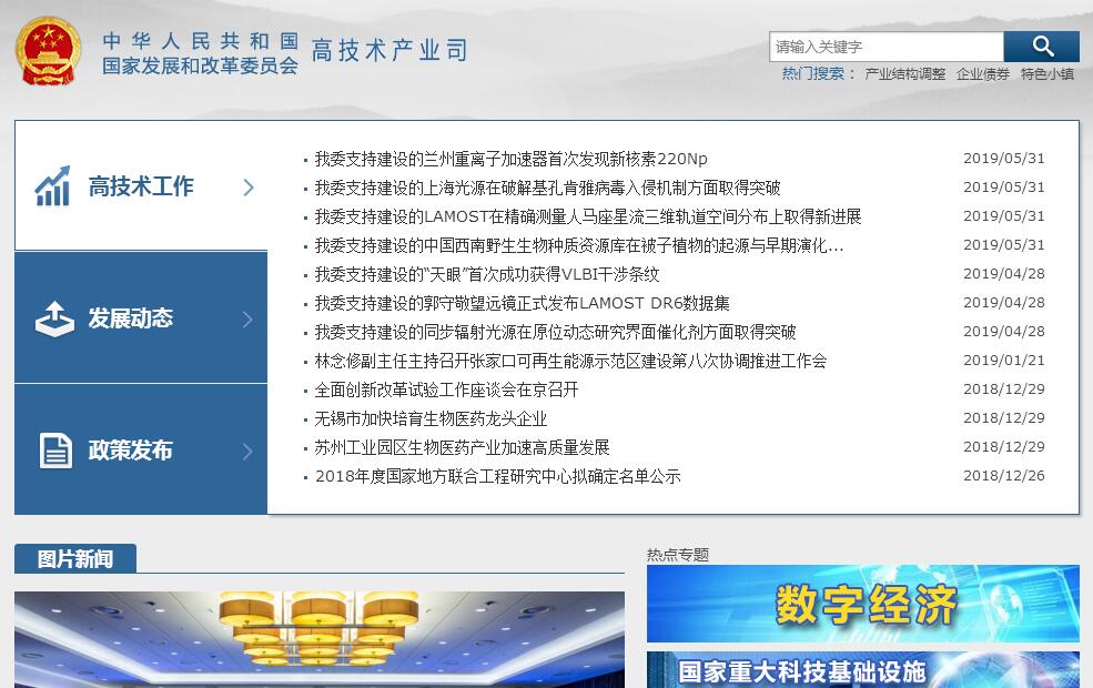 国家发展和改革委员会高技术产业司的主要职责是:(一)监测分析高技术产业发展动态,加强相关发展趋势研判,组织拟订高技术产业发展战略、规划和政策措施,组织拟订和实施年度计划;加强及时评估和动态调整,推进相关调控目标制定和政策手段运用机制化。(二)统筹推进战略性新兴产业发展,拟订和实施国家战略性新兴产业发展规划,协调相关产业和区域规划,统筹推进重大政策和重大工程,推动战略性新兴产业区域协调发展;组织开展战略性新兴产业发展趋势研判以及相关调研和宣传工作。(三)衔接平衡信息、生物、航空航天、新材料、新能源、海洋、高技术服务业等重点产业的发展规划、计划和产业政策,监测分析重点产业运行状况,研究协调发展中的重大问题,研究推进相关领域的体制改革,培育国民经济新兴产业的形成。(四)研究拟订高新技术产业化战略、规划、重点领域和政策措施,指导和推动高新技术产业化机制的建立,指导协调国家高技术产业基地和产业链建设,促进产业技术进步。(五)研究拟订促进高新技术企业创业发展的政策措施,完善创业体系,改善创业环境,引导创业投资,推动社会资金和创业风险投资支持中小高新技术企业,推进新兴产业创业投资计划,组织实施国家新兴产业创业投资引导基金。(六)统筹信息化的发展规划与国民经济和社会发展规划、计划的衔接平衡,会同有关部门研究拟订国民经济和社会信息化发展战略和规划,研究网络安全和信息化发展的重大问题,衔接平衡信息化发展的相关政策,指导企业信息化,参与推动信息化与工业化、城镇化和农业现代化深度融合,推进重点领域的信息化建设。(七)统筹科技发展规划与国民经济和社会发展规划、计划的衔接平衡,研究拟订创新驱动发展相关政策措施,参与推进科技体制改革,指导协调国家技术创新体系的发展,分析自主创新和产业技术的发展趋势,拟订国家自主创新能力建设规划、国家重大科技基础设施建设规划和国家产业技术政策,推动技术创新有效运行机制的建立,提出加快企业技术进步的政策措施,推进企业技术中心建设,促进产学研联合,提高产业核心竞争力,指导协调推进国家创新型城市和重点创新型企业建设。(八)研究提出激励和引导高技术产业发展投入的相关政策。负责安排国家产业技术研究与开发资金和归口的国家财政性建设资金。(九)审核高技术产业和战略性新兴产业的重大建设项目并协调其布局,审核和组织实施重大产业化示范工程、电子政务、网络安全和信息化、科技基础设施、工程研究中心、工程实验室、关键产业技术开发等重大项目,参与科技重大专项的组织协调和实施。(十)组织协调相关的国际合作和国际交流。(十一)承担战略性新兴产业发展部际联席会议办公室职责。(十二)承办委领导交办的其他事项。