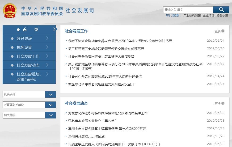 国家发展和改革委员会社会发展司的主要职责是:(一)综合提出社会发展战略,组织拟订社会发展中长期规划和专项规划;编制全国社会发展年度计划,衔接平衡社会发展计划指标,监督评估计划实施情况。(二)分析全国及各地区社会发展形势,研究提出促进城乡、经济与社会协调发展以及社会建设和社会治理的宏观政策;开展社会发展水平综合评价和社会发展预测预警。(三)协调社会发展和改革的重大问题;衔接平衡重大社会政策,研究提出加快社会事业、产业发展和改革以及促进基本公共服务均等化的政策措施;研究提出创新社会治理方式的建议;参与相关法规的制定。(四)统筹推进基本公共服务体系建设,组织拟订基本公共服务体系规划,会同有关部门拟订基本公共服务范围和国家标准,研究提出建设覆盖城乡的社会公共服务体系的投融资政策和规模;编制社会事业专项建设规划;审核、提出社会发展领域中央财政性建设资金安排及部门和地方年度投资计划意见。(五)审核社会发展领域重大项目和中央财政性建设资金安排的项目;协调重大建设项目前期和建设过程中的相关工作,促进基层公共服务资源共建共享;评估项目建设效益。(六)研究拟订人口发展战略、规划及人口政策,提出促进人口长期均衡发展以及与经济、社会、资源、环境协调可持续发展的政策建议;跟踪人口发展动态,做好人口发展预测预警。(七)协调教育、民族、公安、民政、司法、文化、卫生和计划生育、新闻出版广播影视、体育、食品药品、旅游、宗教、社科、文物、中医药、档案、妇女儿童、残疾人、老龄等发展政策,负责联系有关国务院部门、机构和人民团体、社会组织的工作。(八)组织社会发展领域重大问题研究,开展社会发展国际交流与合作。(九)承办委领导交办的其他事项。