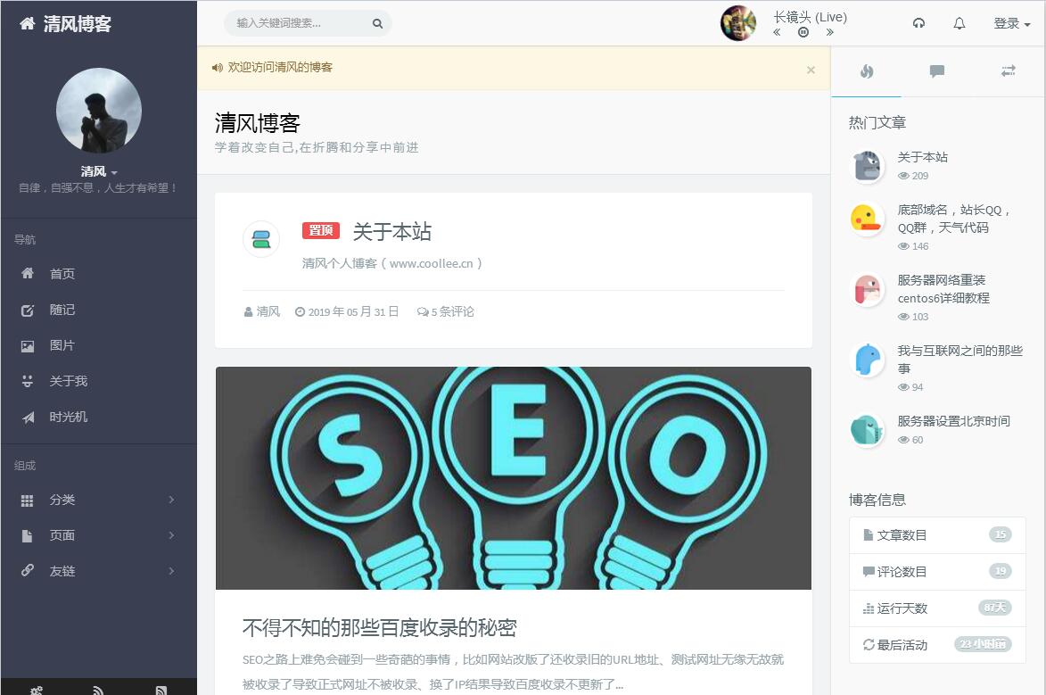 清风个人博客 一个网络爱好者! 此博客用于记录自己的生活点滴和学习笔记。