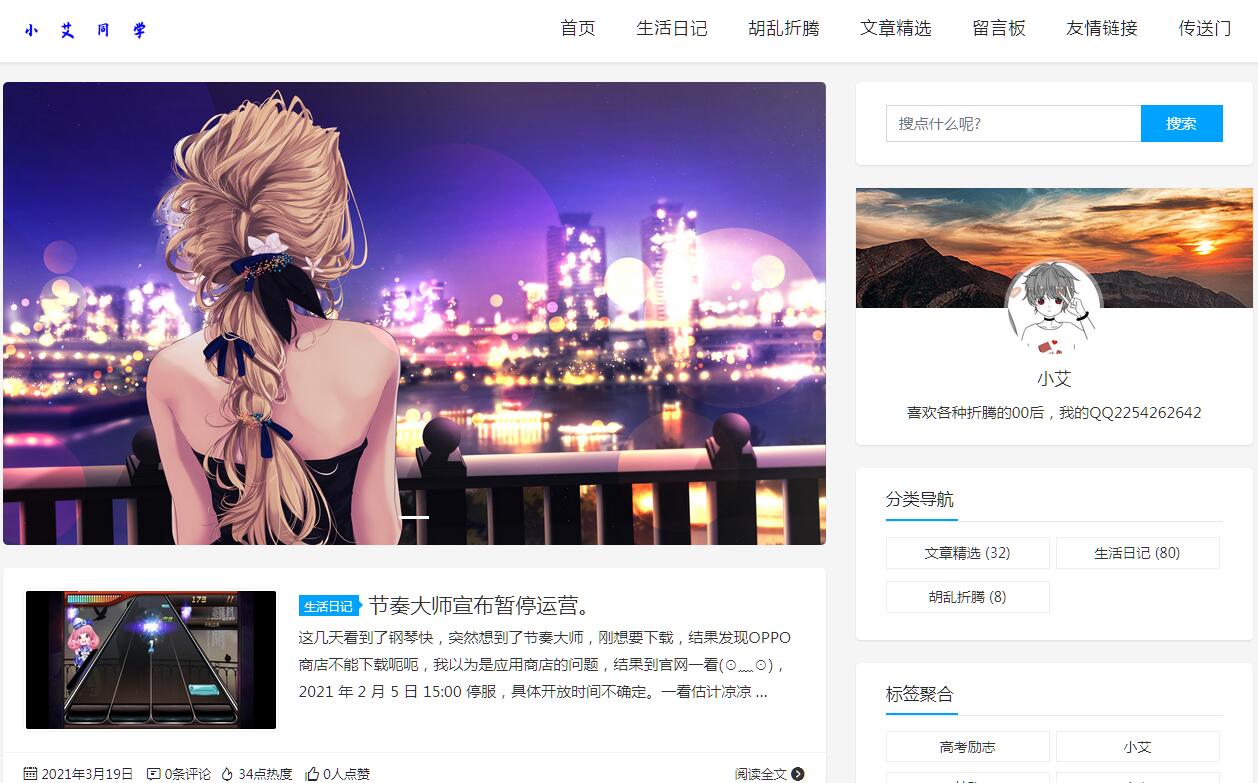 小艾同学一个不喜欢被约束的少年,分享生活模板分享技术博客高考励志视频等等。