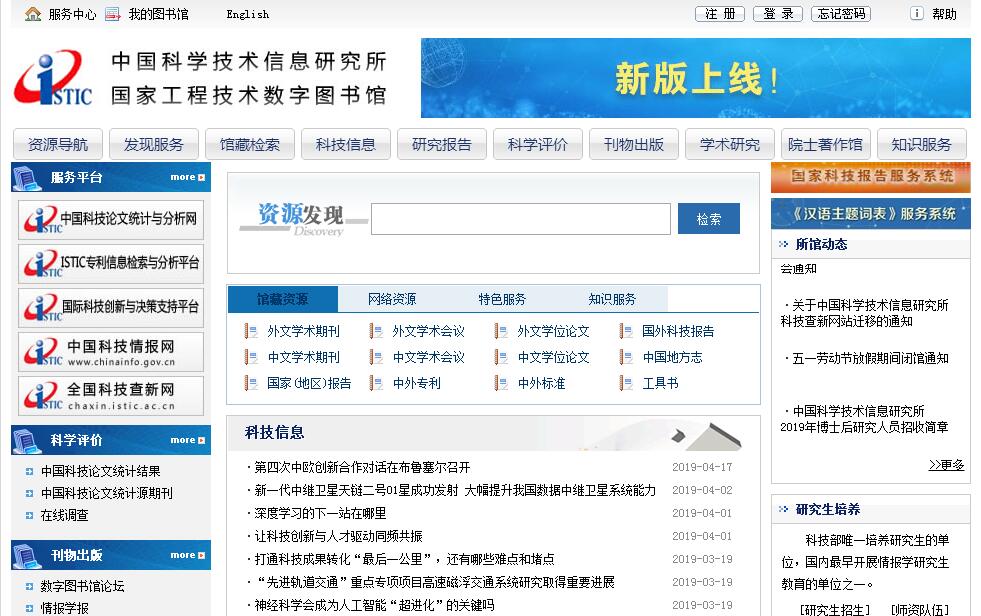 中国科学技术信息研究所(简称中信所)是在周恩来总理、聂荣臻元帅等党和国家领导人的指示和关怀下,于 1956年 10月成立的,是科技部直属的国家级公益类科技信息研究机构。定位于“为科技部等政府部门提供决策支持,为科技创新主体(企业、高等院校、科研院所和科研人员)提供全方位的信息服务;成为全国科技信息领域的共享管理与服务中心、学术中心、人才培养中心和网络技术研究推广中心,成为国家科技创新体系的重要支撑,并在全国科技信息系统中发挥指导和示范作用”。全所下设 7个职能处室、8个公益部门和 3个企业集团。主要从事以“科技决策支持”为特色的信息分析研究、科技信息服务、新技术研发推广和先进服务平台管理、科技信息领域高级人才培养和继续教育培训、社团管理、媒体出版等业务,同时肩负着国家科技管理信息系统、国家科技报告服务系统、国家科技信息资源综合利用与公共服务中心、国家工程技术图书馆建设与发展的重任。六十年来中信所始终秉持“资源立所、技术强所、人才兴所、依法治所”的发展理念,不断深化改革,使中信所的科学研究、公益服务、决策支持和技术研发能力持续提升。“十二五”期间发表中文核心期刊论文 1177篇,被SCI、SSCI、Ei、ISTP、ISSHP等国际著名检索数据库收录论文156篇,在研的国家社会科学基金、国家自然科学基金和博士后基金项目 64个,承担了“十二五”国家科技支撑计划重大项目、国家“863”计划课题、新闻出版总署重大科技工程等国家级重大项目的研究工作。馆藏的国内外学位论文、会议论文、科技期刊、美国政府四大套报告、两院院士著作等大量文献资源为广大科研工作者开展科学研究提供了有力的支持。创建的《中国科技论文引文数据库》《中国国际科技论文和专利数据库》《全国科技查新事实型数据库》《国际科技创新与决策支撑数据库》《区域科技资源及地方科技发展数据库》《国家科技成果转化项目库》《ISTIC专利分析数据库》等特色资源数据库,为科技创新和科技决策提供了重要的数据支撑,完成的研究报告多次受到党和国家领导人的批示。围绕“科技文献服务系统关键技术研究与应用示范”“汉语科技词系统建设与应用工程”,以及“中国数字资源唯一标识系统建设”等行业核心技术和关键技术的研发,形成了“ISTIC专利信息检索与分析平台”“中国可持续发展模型”“科技创新辅助决策支持系统”和“中日机器翻译系统”等一批拥有自主知识产权的专利、软件系统、工具和模型,这些成果进一步提升了中信所服务于创新主体服务的能力。提出的以事实型数据为基础,综合集成“事实型数据 +专用方法工具 +专家智慧”的科技情报研究方法,已在行业内得到广泛应用和推广。中信所一直秉持开放办所的理念,积极开展国内外交流与合作。中信所同北京大学、南京大学、浙江大学、武汉大学、吉林大学等重点高校在教学、合作研究、人才引进、学术交流等方面建立了常态交流机制。同各专业和地方科技情报机构开展了广泛而深入的交流与合作,以全国科技情报机构情报研究成果共享为主要内容的“中国科技情报网”已覆盖了国内 29个省(自治区、直辖市)的省级科技信息机构,成为全国科技情报系统的研究成果共享中心和联系纽带。在人才培养方面,中信所于1978年开始招收情报学专业研究生,是国内首批招收情报学专业研究生的单位,拥有图书情报与档案管理一级学科硕士学位授予权。2002年经人事部批准设立国内首个“图书情报与档案管理”学科博士后科研工作站。同时开展同等学力硕士学位研究生课程进修教育、接收访问学者交流,以及招收在校大学生参加科研实习等活动。多年来为社会不断培养、输出图书馆学、情报学、信息资源管理和竞争情报等方面人才,成为全国科技信息领域的学术中心和人才培养中心。在国际合作方面,中信所代表中国参加了联合国教科文组织全民信息计划(IFAP)、国际科技信息委员会(ICSTI)、亚太地区信息网络(APIN)等国际组织;与汤森路透集团建立了“ISTIC-Thomson Reuters科学计量学联合实验室”,与爱思唯尔集团建立了“ISTIC-ELSEVIER期刊评价研究中心”,与美国千年研究所成立了“ISTIC-MI联合研究中心”,与日本科技振兴机构和韩国科技情报研究院建立了中日韩三方技术部门定期合作交流机制,与美国艾博思科国际有限公司联合设立了ISTIC-EBSCO文献大数据发现与服务联合实验室。此外,还与美国、加拿大、日本等30多个国家和地区的相关研究机构建立了长期稳定的业务合作关系,成为我国科技信息领域对外合作与交流的重要窗口。展望未来,中信所将携手国内外同行,以更加开放的理念为各类创新主体提供优质高效的全方位科技信息服务,继续坚持“落实公益定位,坚持科学管理,服务自主创新,建设一流院所”的工作主线,以面向应用的产品开发和平台服务,整合资源、人才、技术优势,继往开来,向着“国际创新战略智库、国家科技信息大数据中心、国家科技信息资源综合利用与服务中心”的目标前进!