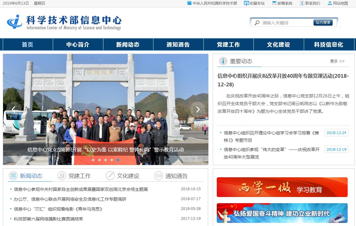 科学技术部信息中心是中华人民共和国科学技术部直属的公益一类事业单位。其主要职责是:1. 承担科技部网络安全和信息化的规划调研及具体实施工作,开展信息化及电子政务应用研究,提出信息化及电子政务工作的技术标准和规范建议。2. 承担科技部门户网站的建设、运行维护和日常管理工作,负责科技部舆情系统建设、舆情监测分析及报告,参与科技部政府网站普查抽查、政府信息公开工作。3. 承担科技部政务服务平台的建设、日常管理和保障服务工作,推进政务信息系统集成、资源整合和共享平台建设,开展政务信息系统运行监测和分析评价。4. 承担科技部电子政务应用、电子公文系统和电子邮件系统等的建设、运行管理和服务工作。5. 承担科技部网络安全技术体系和信息技术保密防护体系的建设、日常管理和应急处置等工作。6. 承担科技部网络平台、信息化基础设施及政务云的建设运行,负责科技部计算机软硬件维修维护等技术保障工作,开展信息化培训工作。7. 承担科技部政务信息编辑报送工作,承担科技部政务影像等相关数字化信息的收集、整理、应用和管理工作,参与科技部新闻宣传工作。8. 承担外国人来华工作等行政许可事项管理服务系统、中国政府友谊奖申报等管理信息系统的运行维护工作。9. 承办部党组、部领导交办及相关司局委托的其他事项。