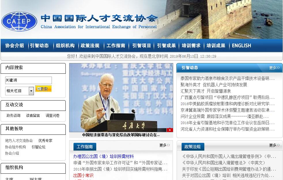 | 网站简介: 中国国际人才交流协会是经中国政府批准的全国性的专门从事国际间专业技术和管理人才交流的公共服务机构。协会的主要业务是聘请外国专家来华工作、选派中国管理和技术人员赴境外实习培训、协助中外组织发展友好往来和经贸关系、组织外国友人来中国考察、培训,提供其他中介服务学习等。协会的宗旨是通过国际间的人才交流活动,促进中国同世界各国在工业、农业、财经、科技、教育、医药、文化等领域的交往与合作,为中国的改革开放和现代化建设及人类文明的进步事业做出贡献。中国国际人才交流协会一直受到中国政府的大力支持,国家外国专家局直接指导协会的各项工作。在全国各省、自治区、直辖市、计划单列市、副省级城市政府设有地方国际人才交流协会,在美国、加拿大、俄罗斯、德国、英国、澳大利亚、以色列、日本、新加坡、香港等国(地区)建立了办事机构。目前,协会已同世界上五十多个国家和地区的社会团体、研究机构、大学和企业建立了密切的联系和合作,业务遍及全球。中国国际人才交流协会的最高权力机构是理事会, |