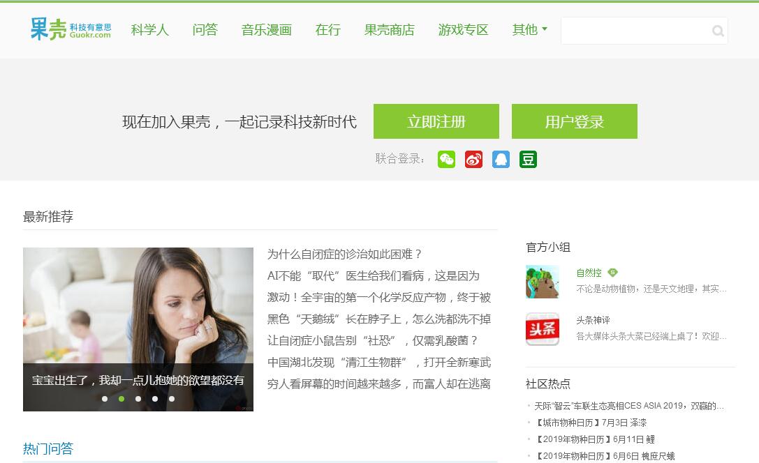 | 网站简介: 果壳网是一个泛科技主题网站,提供负责任、有智趣、贴近生活的内容,你可以在这里阅读、分享、交流、提问。果壳网致力于让科技兴趣成为人们文化生活和娱乐生活的重要元素。 |