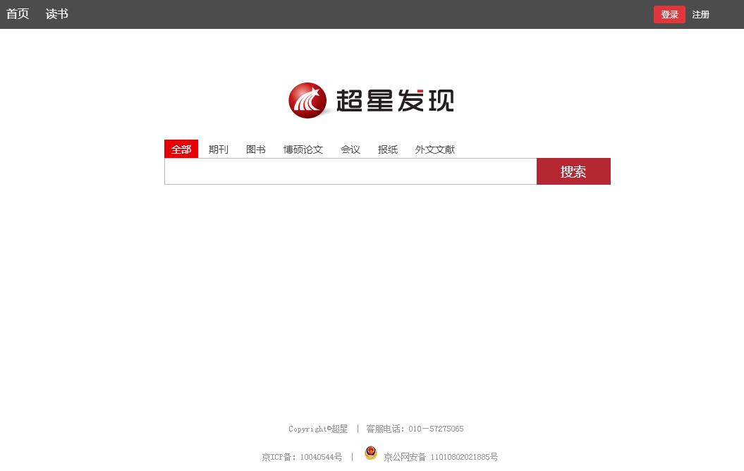 | 网站简介: 超星发现以数十亿海量元数据为基础,利用数据仓储、资源整合、知识挖掘、数据分析、文献计量学模型等相关技术,较好地解决了复杂异构数据库群的集成整合,实现高效、精准、统一的学术资源搜索,进而通过分面聚类、引文分析、知识关联分析等实现高价值学术文献发现、纵横结合的深度知识挖掘、可视化的全方位知识关联,超星发现能够帮助您冲破信息孤岛与信息超载的桎梏,让意外惊喜成为创新的灵感, 让洞察全局成为科学探索的法宝,让巨人的肩膀成为知识价值再生的基石。 |
