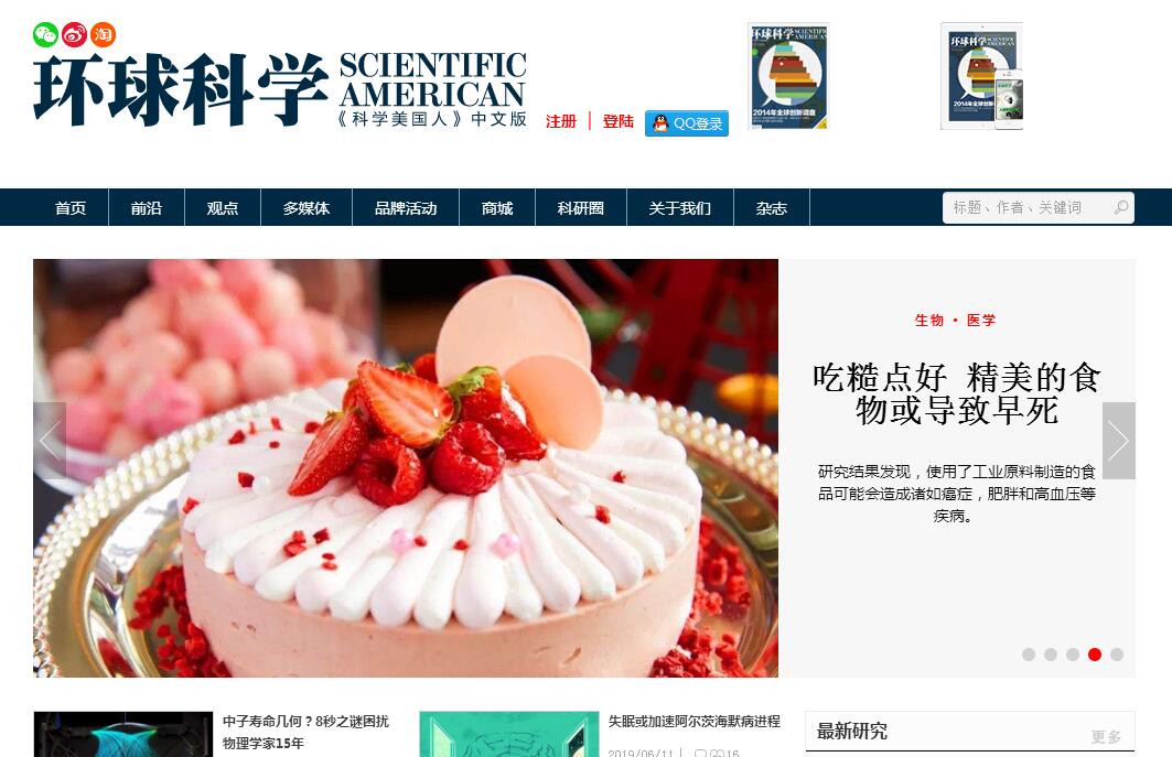 | 网站简介: 《环球科学》是《科学美国人》独家授权中文版。《科学美国人》(Scientific American)是全球科技媒体第一品牌,全球科学家智慧与卓越见解的分享之地。创刊170多年来,她始终站在科技最前沿,为全球超过500万读者提供有关科技的前瞻报道与深度解读。迄先为止,先后已有100多位诺贝尔奖得主和数千科技精英为其撰稿,以通俗易懂的方式向公众传播前沿科技进展。《科学美国人》也是最常被大众媒体、研究机构和政府报告引用的杂志。在欧洲、美国、亚洲,国家科技顾问、政策制定者、企业决策者始终把《科学美国人》作为科学和商业决策的重要参考。《科学美国人》的影响遍及全球,在中国、德国、日本、意大利、法国、西班牙、巴西、俄罗斯、比利时等十多个国家,同步出版国际版本,成为沟通科学与大众的最佳平台。作为独家授权的中文版,《环球科学》沿袭了《科学美国人》严谨、客观的报道风格,同时专注本土话题报道,集纳世界级科学大师、商业领袖及科技观察家和专栏作家的思想智慧,以多元化、国际化角度为社会精英阶层提供有关科技和商业的重要参考。 |
