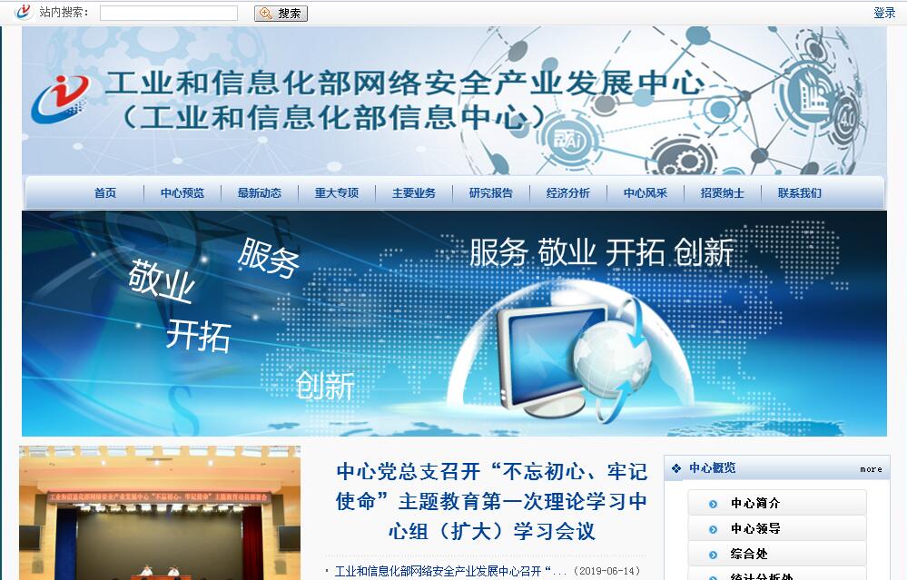 工业和信息化部信息中心是在原信息产业部邮电信息中心基础上更名组建的,2008年国家机构改革成立工业和信息化部后,中编办和工业和信息化部批准成立工业和信息化部信息中心(以下简称信息中心),为部属事业单位。信息中心是一支充满朝气的技术队伍。大学本科以上学历人员占95%,中级专业职称以上人员占60%,其中高级专业职称人员占21%;具有丰富的主持、组织和参与电子政务工程建设、网络与信息安全保障、工业和通信业统计分析及预警监测工作经验。历年来,信息中心承担了包括应用支撑平台、办公应用管理系统、电信业务市场综合管理信息系统在内的数十个电子政务工程项目的建设及运行维护工作,已完成投资过亿元,为部机关搭建了性能优越的电子政务平台,建立了多个自动化高效的应用系统,良好的电子政务平台及稳定有效的运行维护给机关带来了明显的经济效益和社会效益,极大的促进了政府办事效率的提高和政务公开透明。近期信息中心又承担了基于国产化CPU/OS的国家级重点核高基项目、部机关办公自动化(新OA)系统建设。信息中心长期承担工业和信息化部网络信息安全的技术保障工作,是部网络信息安全责任主体单位。多年来参与了奥运会、党代会以及人大和政协会议、重大节日期间等重点时期的信息安全保障,各应用系统运行平稳,网络信息技术成果显著。其主要职责是:一、制定部电子政务项目实施和运行维护相关技术标准和规范;参与部电子政务发展战略和规划编制工作;承担部电子政务领导小组办公室的有关具体工作。二、负责部机关电子政务网络与信息安全相关技术保障工作。三、承担工业和通信业经济运行监测及预测预警系统和决策支持基础数据库运行维护相关工作;承担工业和通信业相关信息统计工作,参与经济运行监测和经济发展重大问题分析。四、承担部机关电子政务项目实施和技术支持工作;承担部电子政务系统和信息资源整合相关工作。五、承担部门户网站内容保障技术支持工作;配合开展部政务公开工作。 六、承担部机关网络基础设施、业务应用系统、应急平台、计算机终端及辅助设备的日常运行维护和相关设备的采购工作。七、受部委托承担部机关信息化相关培训工作。八、承办工业和信息化部交办的其他事项。