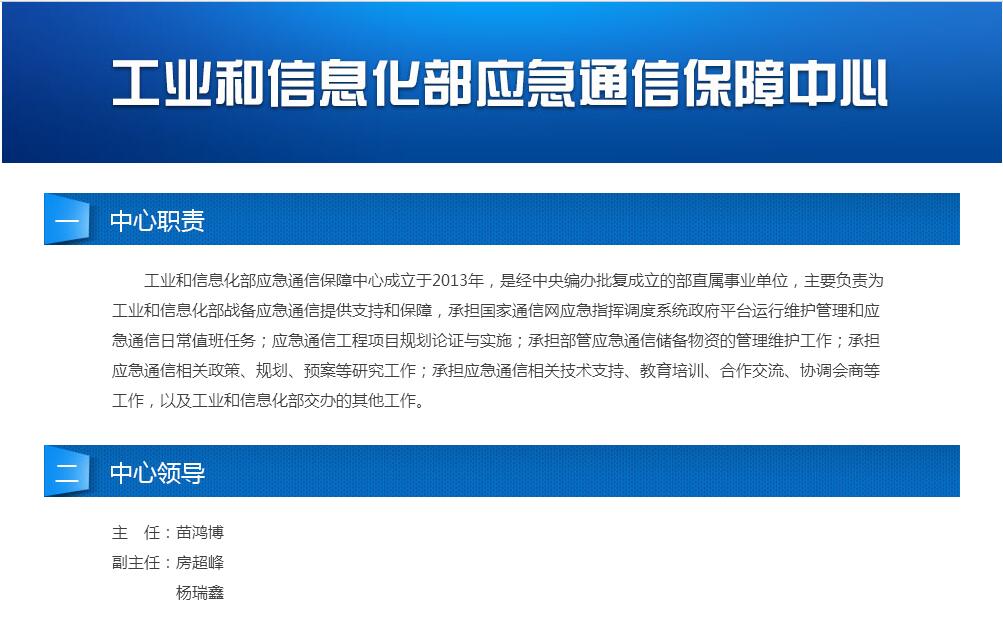 | 网站名称: | 工业和信息化部应急通信保障中心 | ||