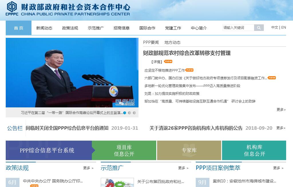 | 网站简介: 财政部政府和社会资本合作中心(PPP中心)主要承担政府和社会资本合作(PPP)相关的政策研究、咨询培训、能力建设、融资支持、信息统计和国际交流等工作。具体职责包括:(一)收集整理国内外PPP相关的理论与案例分析,研究PPP项目实践中政府采购、预算管理、投融资机制、风险控制等问题。(二)制定PPP操作指引、合同指南,协助政府筛选适用PPP的行业、选择合适的PPP模式、制定规范的PPP项目流程等,开展PPP示范项目建设。(三)开展咨询培训,在PPP项目识别、评估、招标采购、合同管理等环节,为政府提供技术支持;开展培训提高PPP工作人员的业务能力。(四)通过股权、贷款和担保等方式支持PPP项目融资,推动融资便利化。(五)建立PPP信息平台,完善统计制度。(六)开展与国际组织和机构的PPP工作合作与交流。PPP中心的成立,将为进一步推进PPP工作提供必要的技术支撑和组织保障,更好的促进PPP规范健康发展。 |