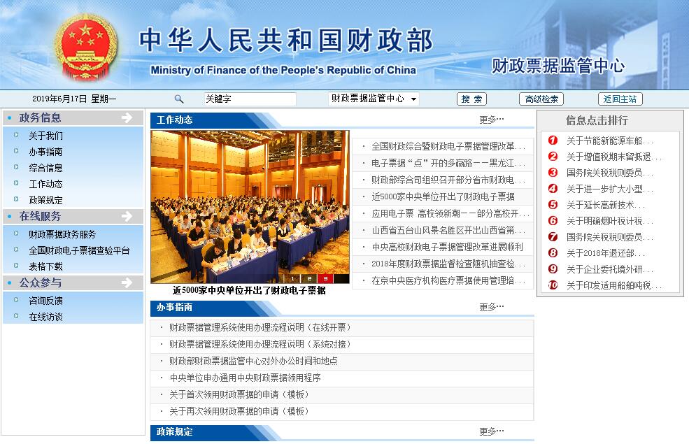 财政部票据监管中心于1997年11月成立,主要职能是指导全国财政票据监管工作;负责中央单位财政票据的印制、审验、发放、保管和核销;监督检查中央单位财政票据的管理和使用;配合公安机关严厉打击伪造、贩售虚假财政票据等犯罪行为。通过票据监管,加强政府非税收入管理,规范政府性收费、罚没收入等非税收入征收行为,强化“收支两条线”管理,推动部门预算改革,充分发挥财政票据“以票控费、以票促收”的基础性作用,从源头上防止乱收费、乱罚款和各种摊派现象。具体职责为:(一)负责组织印制、审验、发放中央非税收入通用票据、罚没票据、公益事业捐赠统一票据、中央行政事业单位资金往来结算票据、非税收入一般缴款书等财政票据,保证财政票据印制质量和发放、存贮安全;(二)核销、稽查中央非税收入通用票据、罚没票据、公益事业捐赠统一票据、中央行政事业单位资金往来结算票据、非税收入一般缴款书等财政票据,查处财政票据违法违纪行为,为完善政府非税收入管理和促进“收支两条线”改革提供基础保障;(三)研究制定财政票据管理政策和制度;(四)配合公安、税务等部门,严厉打击发票违法犯罪活动;(五)负责财政票据相关情况的咨询服务和政策解释工作;(六)负责设计、监制、维护财政票据电子管理系统,并负责该系统的相关推广及培训工作;(七)组织协调全国财政票据监管工作,指导地方财政部门做好财政票据管理工作;(八)负责组织中央行政事业单位和地方财政部门关于财政票据监管业务的培训工作。