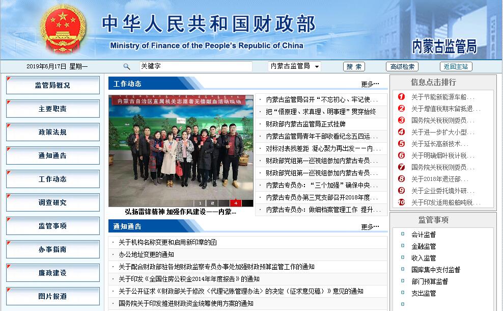 | 网站名称: | 财政部内蒙古监管局 | ||