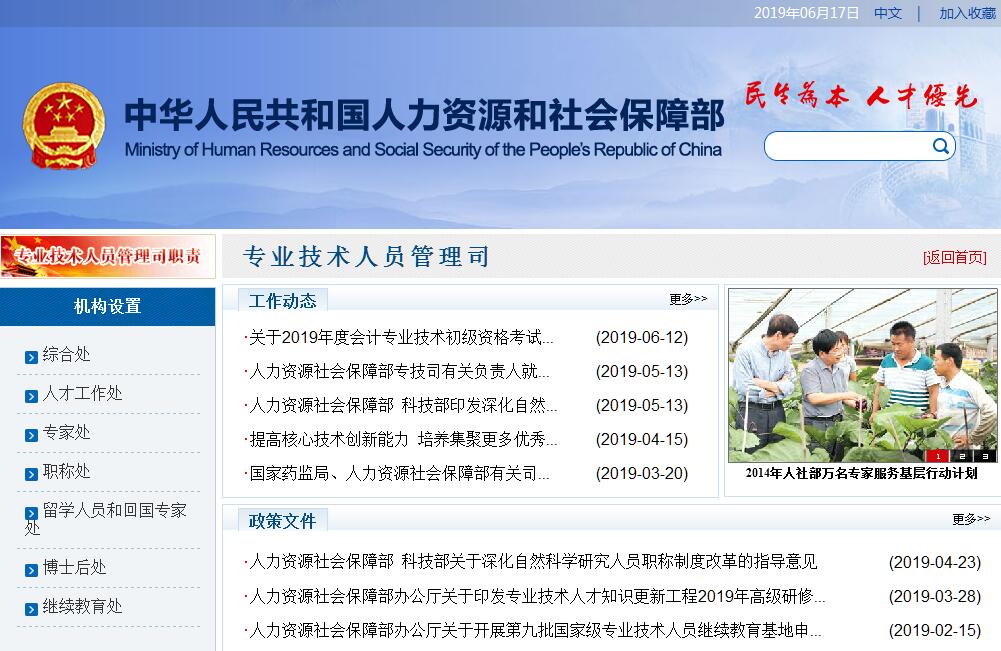 | 网站名称: | 人力资源和社会保障部专业技术人员管理司 | ||