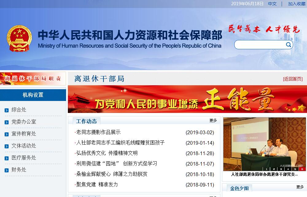 | 网站名称: | 人力资源和社会保障部离退休干部局 | ||