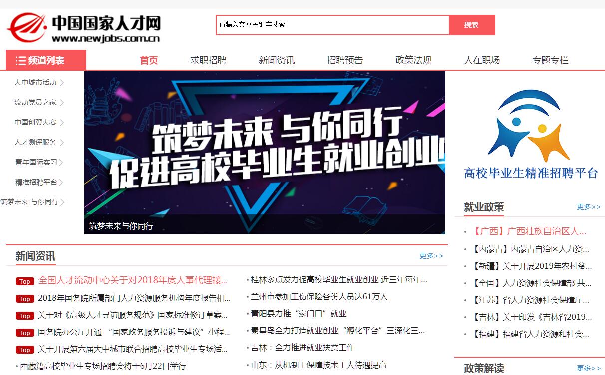 | 网站简介: 中国国家人才网是人力资源和社会保障部全国人才流动中心主办的全国唯一一家国家级政府所属人才服务网站。网站创建于1999年,经过10多年的探索和发展,现已具有诚信的政府背景、专业的服务团队、海量的人才信息、畅通的全国渠道、独有的媒体支持等优势,并且与全国各地人才网站建立了信息共享机制,能为用人单位和各类人才提供全方位专业化的人力资源服务,为40多万家企业、500多万名求职者提供了人才招聘和求职服务。网站已成为颇具影响力的全国人才供求枢纽中心,在跨区域人才流动和配置中发挥了重要作用。 |