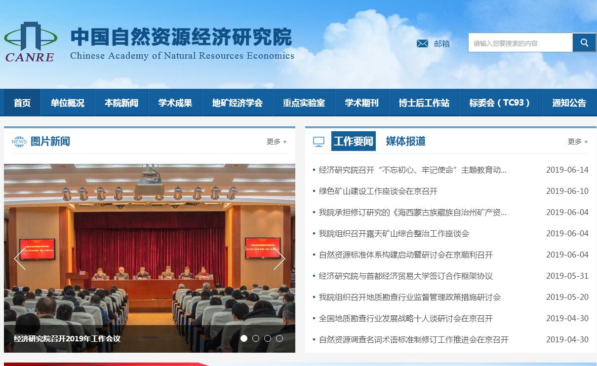 中国自然资源经济研究院是自然资源部直属事业单位,主要任务是开展资源战略、资源规划、资源资产与权益、资源利用与保护、生态修复、资源标准、地质勘查行业和矿产资源管理等方面的基础和应用研究,为自然资源管理提供基础业务支撑和决策咨询服务。我院共设有22个二级单位,其中职能服务部门8个,业务处室14个。挂靠单位有:中国地质矿产经济学会、中国矿业权评估师协会和全国国土资源标准化技术委员会。此外,我院还设有博士后科研工作站。截止2018年底,累计完成各类科研项目1495项,承担并完成国家科技攻关项目和各类基金项目60项,获得省部级以上成果奖172项,公开发表学术论文6200余篇,公开出版学术著作370余部,组织开展各类学术交流活动21000余人次。提交的“关于建立责任共担、利益共享机制,促进长三角地区更高质量一体化发展的建议”“基于统一管理的自然资源分类研究”等63项成果获得省部级及以上领导肯定性批示,提交的“义乌市农民住房财产权抵押贷款试点调研报告”“矿山地质环境治理恢复保证金实施情况调研报告”等29项成果被评为部优秀调研报告。自主研发的《地质调查野外定额信息采集系统》等11个计算机系统,获得国家版权局颁发的“计算机软件著作权登记证书”。围绕国家重大战略需求及自然资源重点工作,支撑完成39项重大调研,59项重大对策。我院连续16年保持“中央国家机关文明单位标兵”荣誉称号,被评为2015-2017年度首都文明单位。连续多年被评为北京市海淀区学院路地区交通安全单位,连续7年被评为部绩效管理先进单位、信息工作先进单位、考核先进单位等荣誉称号。我院科研技术力量雄厚,设备先进,全院共有在职职工264人,其中具有高级职称的有110人,博士、硕士研究生150人。专业结构涵盖资源经济、区域规划、地质矿产、土地管理、法律、财会金融、社会科学等多学科领域。