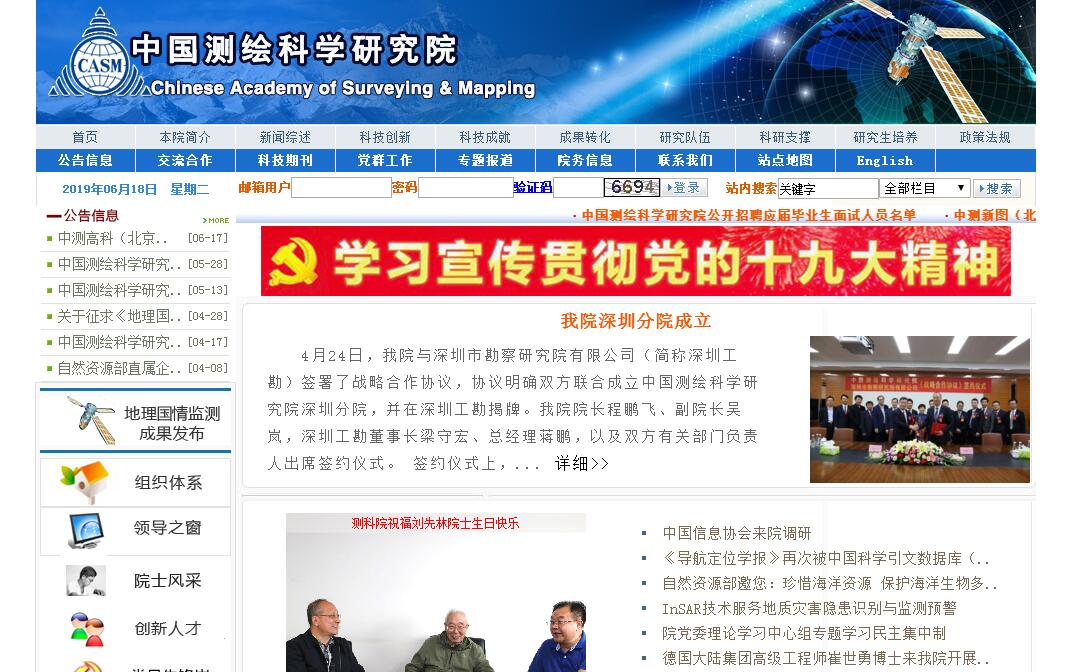 中国测绘科学研究院(以下简称研究院)成立于1959年6月,隶属于自然资源部,作为测绘地理信息行业最大的多学科综合性研究机构,是测绘行业唯一的国家公益性科研院所,国家测绘科技创新排头兵,全国甲级测绘单位、涉密甲级资质单位,通过ISO质量管理体系认证。职责定位是从事测绘与地理空间信息科学的基础和应用研究,为国家重大工程和经济建设社会发展提供测绘技术支撑;解决我国测绘事业面临的重大科技问题,引领测绘行业技术进步;解决地理空间信息产业的共性技术问题,促进地理空间信息产业的发展。研究领域涵盖大地测量与导航、摄影测量与遥感、地图学与地理信息系统、空间信息决策、地理国情监测、土地遥感监测、自然资源监测等研究方向,设有大地测量与地球动力学研究所、摄影测量与遥感研究所、地图学与地理信息系统研究所、政府地理信息系统研究中心和地球观测与时空信息科学重点实验室等5个公益研究机构,组建成立了测绘科技信息中心、国家光电测距仪检测中心、期刊编辑中心等3个科技中介机构,组建成立了中测新图(北京)遥感技术有限责任公司、北京四维远见信息技术有限公司、北京四维空间数码科技有限公司、中测高科(北京)测绘工程技术有限责任公司、北京测科空间信息技术有限公司等5家高新技术企业。依托运行的创新平台有国家测绘工程技术研究中心、国家测绘地理信息计量站、测绘地理信息国际联合研究中心、中英地理空间信息联合研究中心和科技部国家野外观测台站,以及院浙江、新疆、湖南、山东分院,地理国情监测中原中心、湖南中心、重庆中心,国家测绘工程中心山东、河北分中心等,形成了由公益研究、中介服务、高科技企业和协同创新平台组成的测绘地理信息科技创新体系。目前,我院在职人员248人,在读硕博士研究生和博士后137人,院属企业在京工作人员678人,离退休人员218人,共计1281人。其中,中国工程院院士1人、万人计划首批入选者3人、百千万人才工程国家级人选8人、原国家测绘地理信息局科技领军人才6人、原国家测绘地理信息局青年学术和技术带头人10人,特聘客座教授21人。研究院始终以测绘科技创新为己任,以引领测绘科学发展、促进技术进步为目标,建立了传统测绘技术体系,推动了模拟测绘向数字测绘的转变,自主研发了SAR测图系统、无人机航摄系统、移动测量系统,高分辨率遥感数据处理系统、多源遥感影像智能解译系统,地理信息公共平台、政府地理信息服务平台等,基本建成了以获取实时化、处理自动化、管理网格化、服务社会化为特征的信息化测绘技术体系。目前正在加快地理国情监测技术研究,推动信息化测绘向智能化测绘转变。近年来,研究院高度重视军民融合发展,在北斗工程、西部测图、海岛礁测绘、国防交通空间数据平台、军演三维平台和阅兵飞行模拟等多方面开展合作,为国防现代化建设提供测绘科技保障。建院以来,承担并完成国家重点科研项目和重大工程项目500余项,获得世界地理空间信息杰出奖1项,国家科技进步奖 24项(一等奖3项), 国家发明奖3项,省部级科技进步奖80余项(一等及以上),制定国家和行业技术标准41项,授权国家专利100多项,软件著作权200多项。成果广泛应用于自然资源调查、人口、交通、城市规划、生态环境监测、防灾救灾、海洋测绘以及国防建设等国家重大战略和国民经济建设的各个领域。
