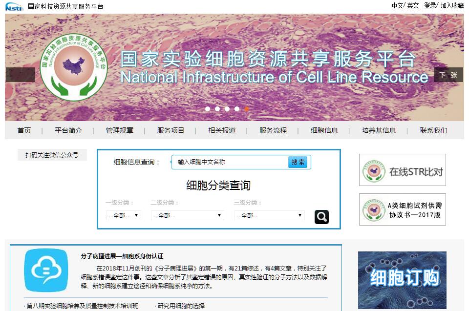 国家实验细胞资源共享平台是国家自然科技资源平台的重要组成部分。实验细胞资源共享平台的主要任务包括:资源系统调查;规范制定及检验完善;实验细胞标准化整理整合;实验细胞资源数据库建设整合;实验细胞资源评价;实验细胞资源信息共享;实验细胞实物共享;珍贵新建资源的收集整理保藏。实验细胞资源共享平台整合了全国本领域最具影响力的6家单位的实验细胞资源,分别是北京中国医学科学院基础医学研究所,中国食品药品检定研究院、上海中国科学院上海生命科学院、武汉大学生命科学研究院、中国科学院昆明动物研究所和西安第四军医大学细胞工程研究中心。这6家单位从地理位置上看分布合理,而且六家单位在资源保藏方面尽管有交叉,但是各自有着自己的特色。国家实验细胞资源共享平台,制定完善了各种管理规章,制定了标准操作规程,出版了《实验细胞资源的描述标准与管理规范》、《实验细胞资源目录》《细胞培养实验手册》;平台整合标准化整理、数字化表达实验细胞2400余株系。平台稳定了一批从事实验细胞资源保藏的科技人员队伍;平台为大家提供7*24免费信息服务、细胞质量控制相关的各种技术服务及细胞资源实物服务。自2011年以来平台已为全国30余省市的科研、教学、疾控、生物制药企业等提供资源实物服务3万余株系次。