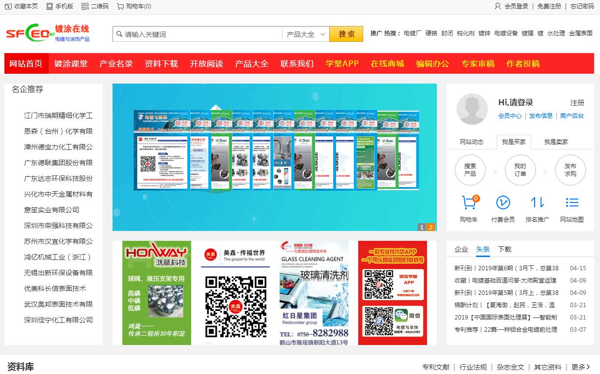 | 网站简介: 表面处理领航网(www.sfceo.net)是《电镀与涂饰》杂志创办的行业垂直门户网站。网站起步于广州,放眼于全国,致力于成为表面处理行业最专业、实用、友好的信息交流和用户互动平台。表面处理领航网信息丰富,功能齐全,涵盖了行业资讯、企业展台、产品中心、展会专区、人才空间、技术天地、专题报道等多个二级频道,涉及表面处理行业的新闻、人物、专题、法规、技术、企业、产品、人才等众多内容,真正满足了行业一站通的需求。表面处理领航网采用互联网最为流行的技术手段,以大气、简洁为目标,融合了网络社区的理念,以推动我国表面处理行业的快速发展。 |