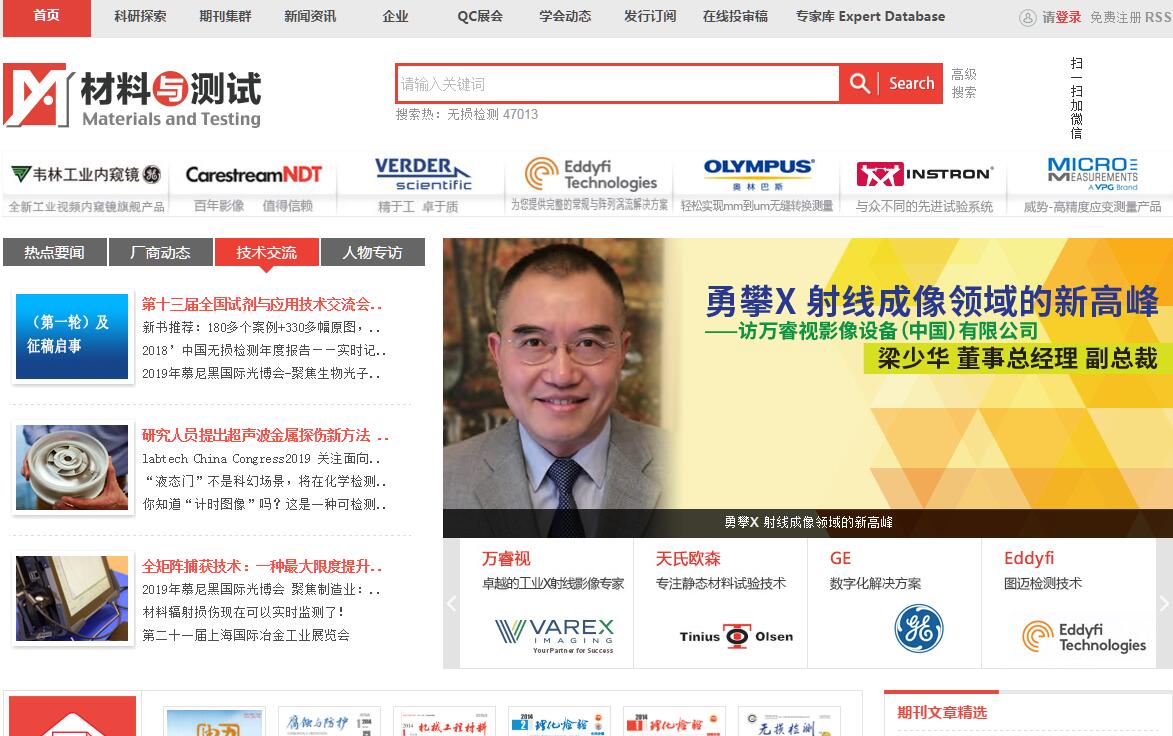 | 网站简介: “材料与测试网”(www.mat-test.com)自从2006年上线运行以来就是上海材料研究所期刊杂志社的重要组成部分,长久以来一直作为论文投审稿、信息发布、企业品牌宣传等功能的窗口,是公司不可或缺的重要载体之一。2015年经过全新升级改版的“材料与测试网”以信息化和期刊数字化发展为出发点,以资讯交流平台的形式,全面报道和展示包括新材料、无损检测、理化检测、防腐蚀等领域内的科技文献、新闻资讯、产品等等内容。网站涵盖有行业资讯交流、期刊集群管理、论文数据库管理、网络期刊、在线展览、企业产品展示等功能。“材料与测试网”以上海材料研究所科技期刊杂志社为技术依托,辅以各行业学会及编委专家为后盾,秉持传统科技期刊的内容原创和品质权威的独特优势,致力于为材料研发及检测行业的从业人员提供专业的技术服务和信息服务。上海材料研究所期刊杂志社除了运营“材料与测试网”与编辑出版六本专业的科技期刊外,还组织主办“Q.C.China中国国际质量控制与测试工业展览会”;每年联合所属行业学会,组织多场行业学术交流活动;以及针对无损检测行业,每年编辑发行《中国无损检测年度报告》。 |