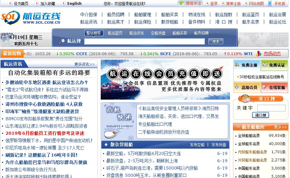 航运在线(WWW.SOL.COM.CN)2000年创立于北方明珠大连,是中国第一家航运门户网站,也是目前中国最著名的航运门户网站之一。航运在线专业面向航运、海事、外贸、船舶、物流等相关企业提供在线交易、新闻资讯以及网络推广、企业信息化建设等综合性的电子商务服务。其中围绕着船东和船舶展开的在线交易服务是航运在线的特色服务,基本上涵盖了航运产业链的各个环节,包括:散杂货租船、集装箱订舱、船舶买卖、备件物料供应、船员招聘、陆上管理人才招聘、船舶管理、船舶保险等,是航运相关企业拓展业务、开展网络营销的首选电子商务网站。航运在线实行会员制模式,要发布和查询各类商业信息需要首先注册成为会员。同时,为了提高会员企业和交易信息的质量,我们还在业内率先推行了企业资质认证和信用评价机制,从而较好的提高了网络交易的安全性和价值性。截止到2018年底,航运在线已经拥有各类企业会员约143,712家,个人会员约567,218名,会员群体遍布国内各大港口城市以及世界主要航运国家。作为中国领先的航运电子商务服务提供商,航运在线将继续以专业、创新和满足需求为工作导向,不断提高信息产品和交易服务的质量,为广大会员企业开拓一个更加广阔的网上航运交易市场。