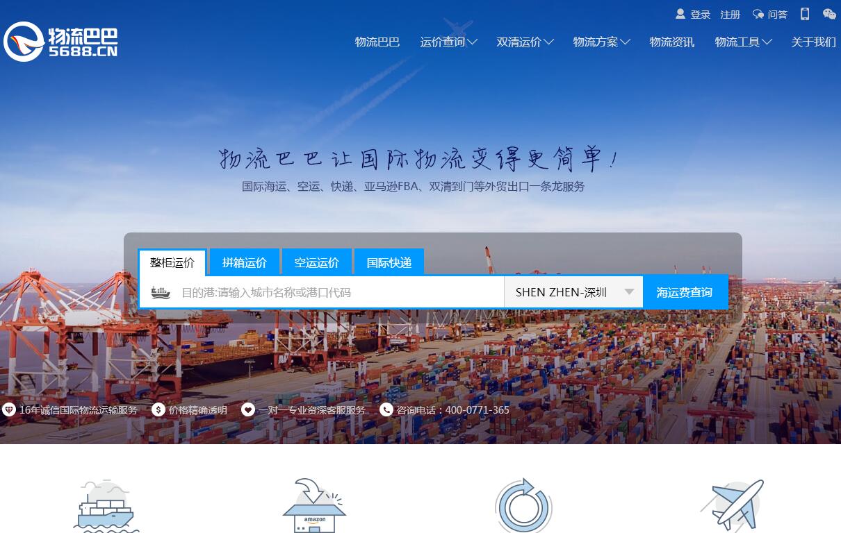 物流巴巴网(www.5688.com.cn)是深圳市宏福圣货运代理有限公司旗下重金打造的综合国际物流服务平台。物流巴巴可为您提供在线查询国际物流价格、在线订舱、在线核对信息、在线跟踪查询、在线支付、在线开票等功能。涵盖进出口国际海运整箱,海运拼箱,国际空运,国际快递,亚马逊FBA,专线双清关等业务范围。还针对不同行业,不同目的地,不同业务类别做出具体解决方案。物流巴巴还是国家物流电子商务试点单位,O2O示范企业,物流巴巴以互联网思维针对传统国际物流行业的信息不对称与服务标准不统一的难点痛点逐一解决。物流巴巴组建专业的电商客服队伍,为您提供透明、公正、方便、快捷、智能、可视化的O2O服务。物流巴巴整合世界级优质海运,空运,陆运承运商,为您提供一站式物流解决方案,让物流、信息流、资金流、服务流聚合为中国梦。物流巴巴在线服务产品: 国际海运、国际空运、国际快递、亚马逊FBA、报关清关、海外仓储、分拨派送、保险、金融、物流方案策划等,为进出口企业保驾护航。物流巴巴拥有强大的IT开发技术团队,通过SAAS云服务,提供智能AI物流+大数据的挖掘,完善您的供应链生态圈,让您专注于运营与研发。