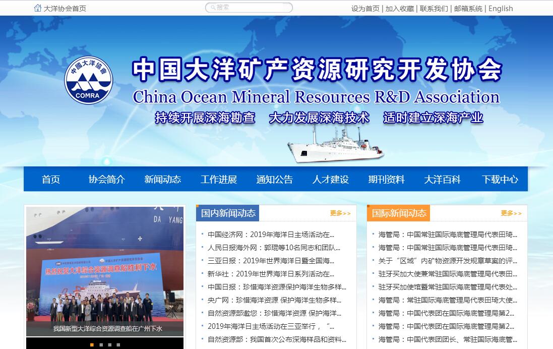 中国大洋矿产资源研究开发协会(China Ocean Mineral Resources R & D Association,简称“中国大洋协会”)于1990年4月9日经国务院批准成立,其宗旨是:通过国际海底资源研究开发活动,开辟我国新的资源来源,促进我国深海高新技术产业的形成与发展,维护我国开发国际海底资源的权益,并为人类开发利用国际海底资源作出贡献。中国大洋协会自成立以来,在国家海洋局党组和协会常务理事会的领导下,在国家各综合部门的指导和大力支持下,统筹国内各领域、各专业优势力量开展国际海域工作,在维护我国国际海域权益、开发国际海底资源、发展深海高新技术、参与国际海域事务等方面取得了积极进展。1991年3月5日,经联合国批准,中国大洋协会在国际海底管理局和国际海洋法法庭筹备委员会登记注册为国际海底开发先驱者,在国家管辖范围外的国际海底区域分配到15万平方公里的开辟区。1999年3月5日,在完成开辟区50%区域放弃义务后,中国大洋协会在上述区域最终获得7.5万平方公里具有专属勘探权和优先商业开采权的多金属结核矿区,拓展了我国资源储备新来源。1997年,根据《联合国海洋法公约》有关规定,国际海底管理局批准了中国大洋协会在其多金属结核矿区15年的勘探工作计划。随后,中国大洋协会于2001年5月与国际海底管理局签订了《勘探合同》,标志着中国大洋协会正式从国际海底开辟活动的先驱投资者成为国际海底资源勘探的承包者。继2001年在东北太平洋获得7.5万平方公里多金属结核合同区后,中国大洋协会于2011年在西南印度洋获得面积为1万平方公里的多金属硫化物合同区,2014年在东北太平洋获得面积为3000平方公里的富钴结壳合同区,使我国成为世界上第一个在国际海底区域拥有“三种资源、三块矿区”的国家。在深海装备和保障能力方面,逐步形成“三龙”(“蛟龙”号、“海龙”号和“潜龙一号”)和四大装备(中深钻、电视抓斗、声学拖体和电磁法)为代表的深海装备体系,以及以国家深海基地管理中心为代表的大洋保障体系。在参与国际事务方面,中国大洋协会积极参与国际事务,履行承包者义务,特别在深海环境保护方面,组织国内优势力量,开展实质性研究,切实履行合同义务。党的十八大提出“建设海洋强国”战略部署,习近平总书记进一步提出“一带一路”战略构想,面对这一历史机遇,中国大洋协会正以“自强、探索、奉献、和平”的大洋精神和“严谨求实、团结协作、拼搏奉献、勇攀高峰”的载人深潜精神,紧跟国际海底活动新动向,谋求我国大洋事业新发展,秉持“持续开展深海勘查、大力发展深海技术、适时建立深海产业”的大洋工作方针,为维护我国国际海域权益、建设海洋强国努力奋斗!