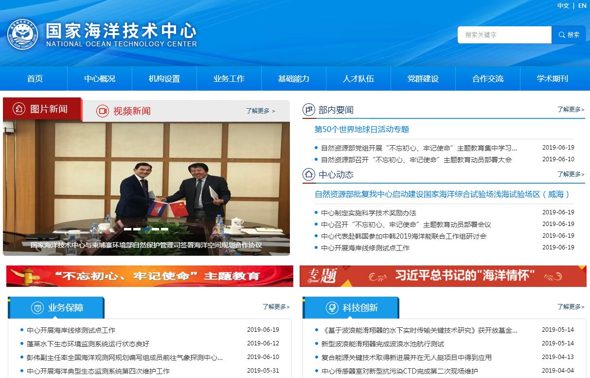 国家海洋技术中心创建于1965年,是隶属于自然资源部的国家公益性事业单位。中心主要职责是负责对全国海洋技术发展实施业务指导,为国家海洋自然资源管理、海洋公益服务及海洋安全保障提供技术支撑,开展我国海洋领域基础性、前沿性和关键共性技术创新。国家海洋技术中心主要业务方向包括:国家全球海洋立体观测网规划与设计、国家海洋观测网建设运行业务保障、海洋空间规划与功能区划研究与编制、海域海岛管理技术支撑、海洋资源调查监测与评估、国家海洋可再生能源管理技术支撑、国家海洋装备管理业务体系建设运行、国家海洋综合试验场运行管理、海洋军民融合业务支撑、海洋卫星遥感定标检验、国家海洋调查船队运行管理技术支撑、海洋无线电管理技术支撑、海洋技术发展战略与规划研究和海洋观测监测监视及海洋可再生能源利用技术创新。中心拥有国内规模最大的海洋监测技术和装备动力环境实验室。在威海、舟山和珠海万山分别建设运行国家海洋综合试验场、国家潮流能试验场和国家波浪能试验场。此外中心还拥有海洋观测网设计与状态监控技术实验室、海洋高性能传感器实验室、海洋剖面运动测量技术实验室、海底观测技术实验室、海洋装备可靠性和环境适应性综合测试实验室、深海可视压力实验室、海洋声学实验室、海洋光学和微波遥感定标检验技术实验室、海洋可再生能源能量转换和测试技术实验室、海洋空间规划和功能区划技术实验室、海洋生化和放射性实验室等一批特色突出、功能先进的实验室和试验设施。近十年以来,国家海洋技术中心累计承担国家863计划、国家科技支撑计划、国家重点研发计划、国家自然科学基金、行业科研专项、军方预研和型研等国家级高技术研究项目一百多项,有力的支撑了国家海洋预警监测、海洋自然资源调查、海域海岛综合管控、海洋生态环境保护与修复、极地大洋科考、海上国防建设和海洋经济发展。国家海洋技术中心通过了国军标质量管理体系资质(GB/T19001C-2016)和装备承制单位资格认证,具备国家海域使用论证甲级资质、国家测绘乙级资质。中心具有硕士学位授予权和博士后工作站。中心是中国海洋学会海洋观测技术分会、中国海洋工程咨询协会海洋可再生能源分会、中国太平洋学会海域管理分会、国家海洋标准化委员会海洋观测与海洋能分技术委员会挂靠单位。中心与世界二十多个国家和地区的十余个海洋部门、研究机构和国际组织建立了长期合作关系。代表中国政府加入了国际能源署海洋能系统实施协议(IEA-OES)。奋进新时代,创造新业绩。国家海洋技术中心将按照国家生态文明建设、海洋强国建设和统筹自然资源管理的战略部署,改革创新、锐意进取,不断提升公益服务水平,为建设国际一流的国家业务中心而努力奋斗!
