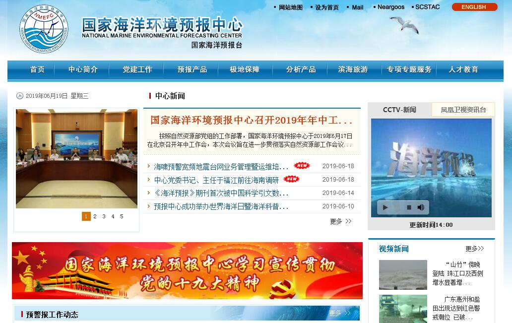 国家海洋环境预报中心(自然资源部海啸预警中心)(简称“预报中心”),是自然资源部直属的财政补助公益一类事业单位,主要职能是负责我国海洋环境预报、海洋灾害预报和警报的发布及业务管理,为人民生产与生活、海洋经济发展、海洋管理、国防建设、海洋防灾减灾等提供服务和技术支撑。预报中心组建于1965年,其前身为国家海洋局海洋水文气象预报总台,1983年更名为国家海洋环境预报中心,1984年加挂国家海洋环境预报研究中心,1985年开始以国家海洋预报台对外发布预报,2013年9月,联合国教科文组织政府间海洋学委员会太平洋海啸预警系统政府间协调组正式批复由国家海洋环境预报中心筹建南中国海区域海啸预警中心。预报中心提供的海洋预报服务主要包括海洋灾害预警报、海洋环境预报和海上突发事件应急预报。海洋灾害预警报主要有:海浪、风暴潮、海冰、海啸预警报以及赤潮、绿潮等海洋环境灾害分析预测;海洋环境预报主要有:海流、海温、盐度、海洋气象预报、海洋气候、厄尔尼诺等;海上突发事件应急预报主要是指针对海上搜救、溢油、污染物等制作发布漂移轨迹、扩散路径等分析预测结果。预报服务范围从全球大洋到我国管辖海域,实现了无缝覆盖。常规海洋预报产品时效可达5天,厄尔尼诺和海洋气候、海平面上升等长期预测产品时间尺度可达1-3月。此外,预报中心还开展海洋灾情调查与评估、预报业务系统运行与管理、预报警报发布、标准规范制定、技术开发、专业培训与咨询服务等项工作。在国家海洋局的大力支持下,预报中心在海洋预警报支撑能力建设上取得了跨越式的发展。拥有现代化、高水平的国家海洋预警报业务平台。建设了国家海洋实时数据管理平台,实现了对国家海洋局立体观测网实时海洋观测(监测)数据可视化集成监控。作为全国海洋预警报视频会商的主会场,实现了与全国各级地方海洋预报机构之间的互联互通。为保障国家海洋数值预报系统的高性能计算需求,预报中心现拥有神威3000A+高性能计算机系统和IBM刀片集群系统,总计算能力约60万亿次,总存储能力约为550TB。建立了用于数据处理及预报产品制作的业务专网,数据管理应用效率及安全性大幅提升。牵头建设了国家海洋局实时海况视频监控系统,实现了对海洋站周边及海洋灾害易发海域海况的实时显示。建设了高清影视制作及虚拟演播系统,产品制作发布能力显著提高。预警报产品发布渠道涵盖电视、广播、报纸、手机短彩信、传真、卫星(VSAT)及地面专线等,在中央电视台、凤凰卫视、中央人民广播电台、中国国际广播电台等主流广播电视媒体开设有专门的海洋预报栏目,并在互联网新媒体如微博、微信等平台开通了海洋预报官方频道。通过50年的发展,预报中心已经成为我国从事海洋环境和海洋灾害预报警报、科学研究和咨询服务的国家级权威机构,同时承担海洋环境保障、海洋工程计算、大气和海洋边界层探测与评价等多种技术服务任务,为蛟龙号深潜试验航次、亚丁湾护航、雪龙号极地科考、海上油气生产、港珠澳岛隧工程等重大海上活动和重大涉海工程提供及时准确的保障服务,取得了良好的社会效应。